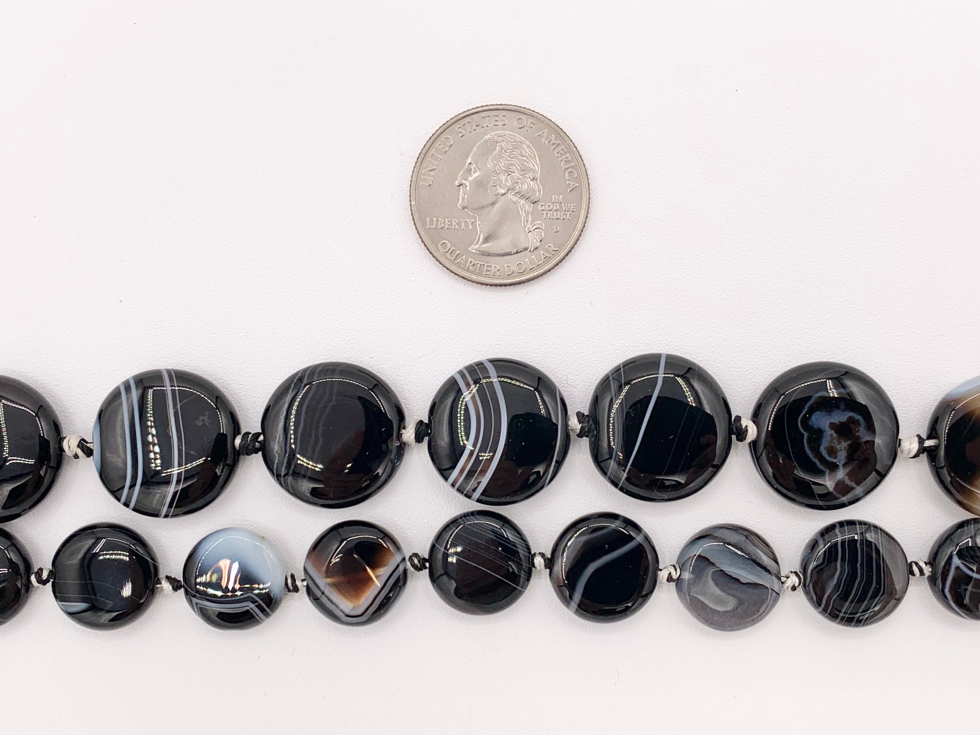Grade AAA Black Sardonyx with White Stripes Agate Shiny Polished Oval And Coin Shape Natural Stone Beads Around 15"