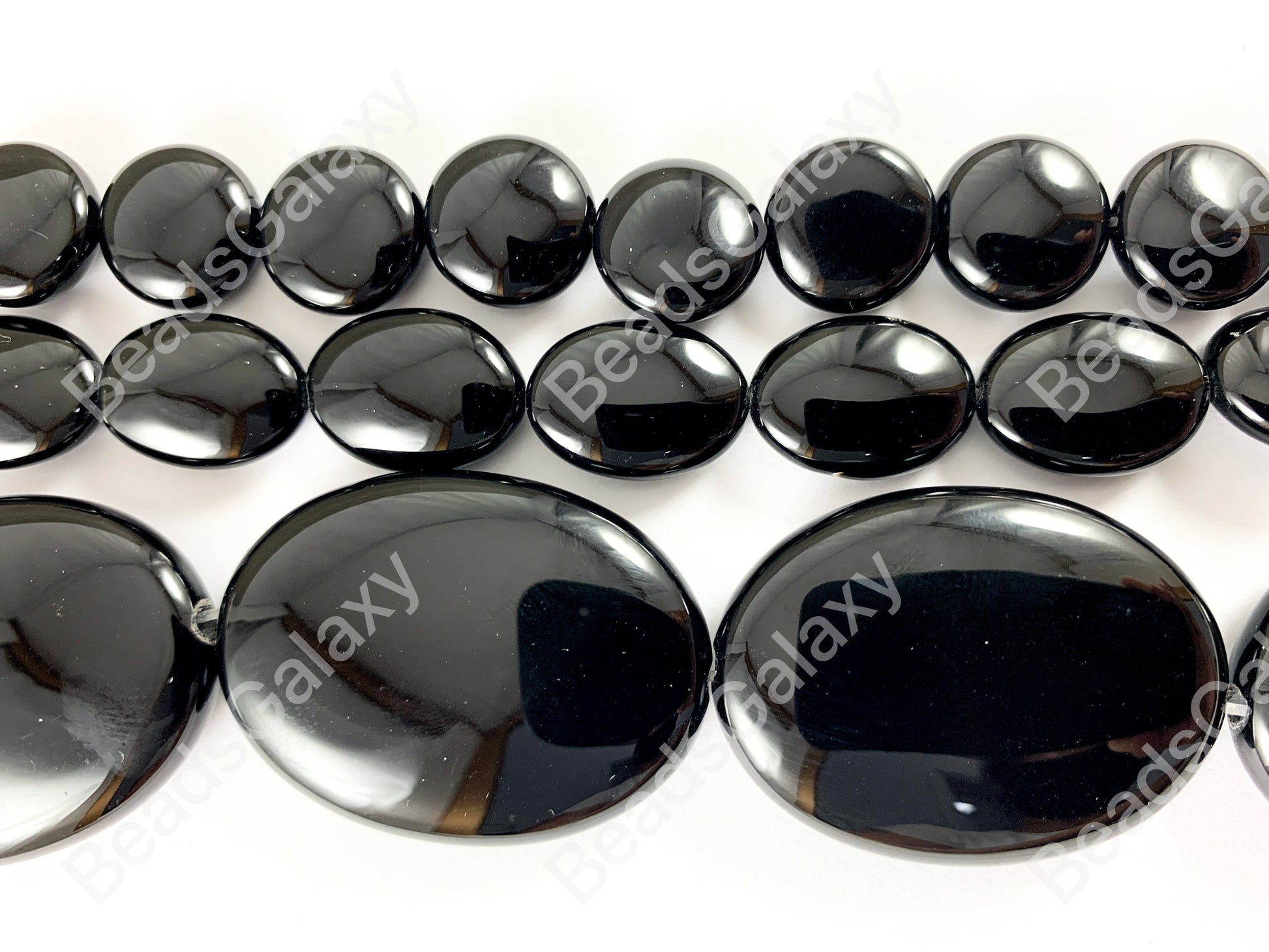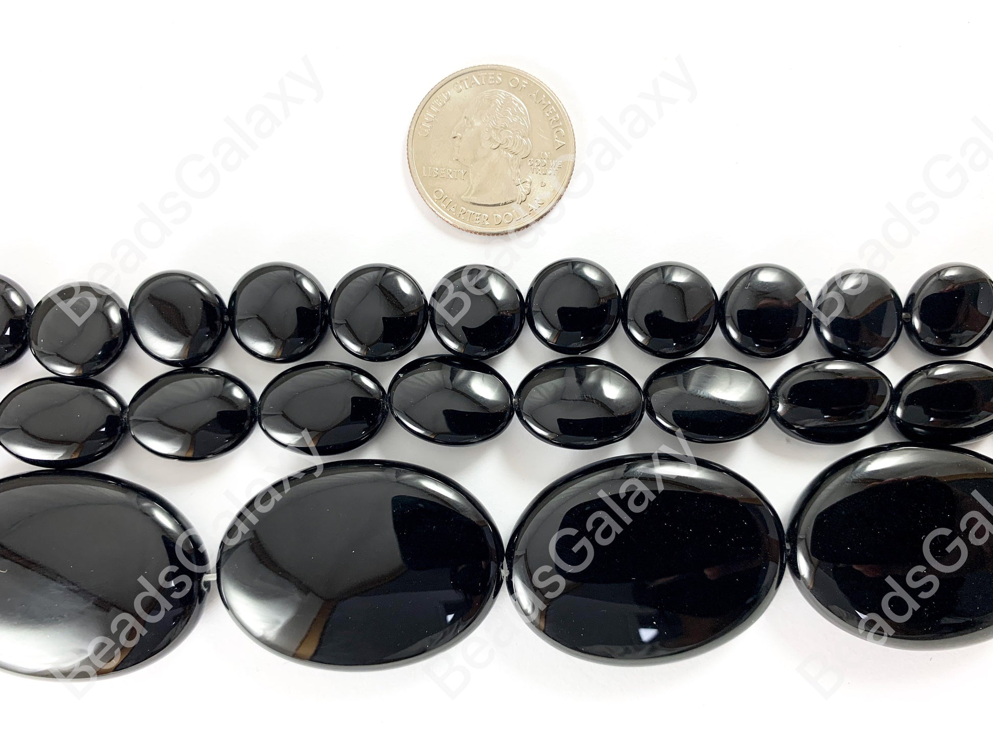 Grade AAA Solid Black Onyx Fine Cut Coin Oval Shiny Natural Gemstone Beads High Quality Healing Stone Around 15" 1 strand