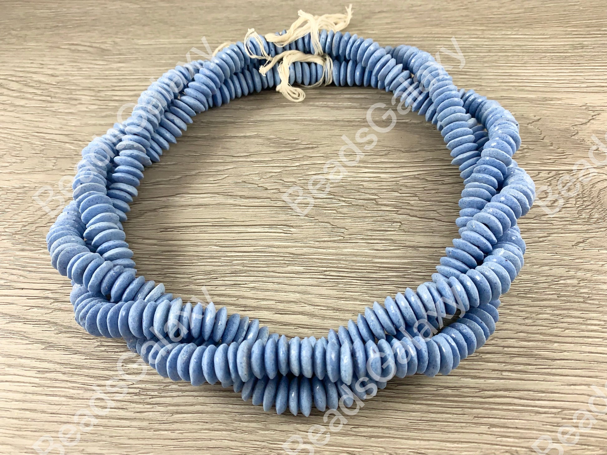 Handmade Baby Blue Sea Glass Power Saucer Rondelle Beads From Ghana Africa