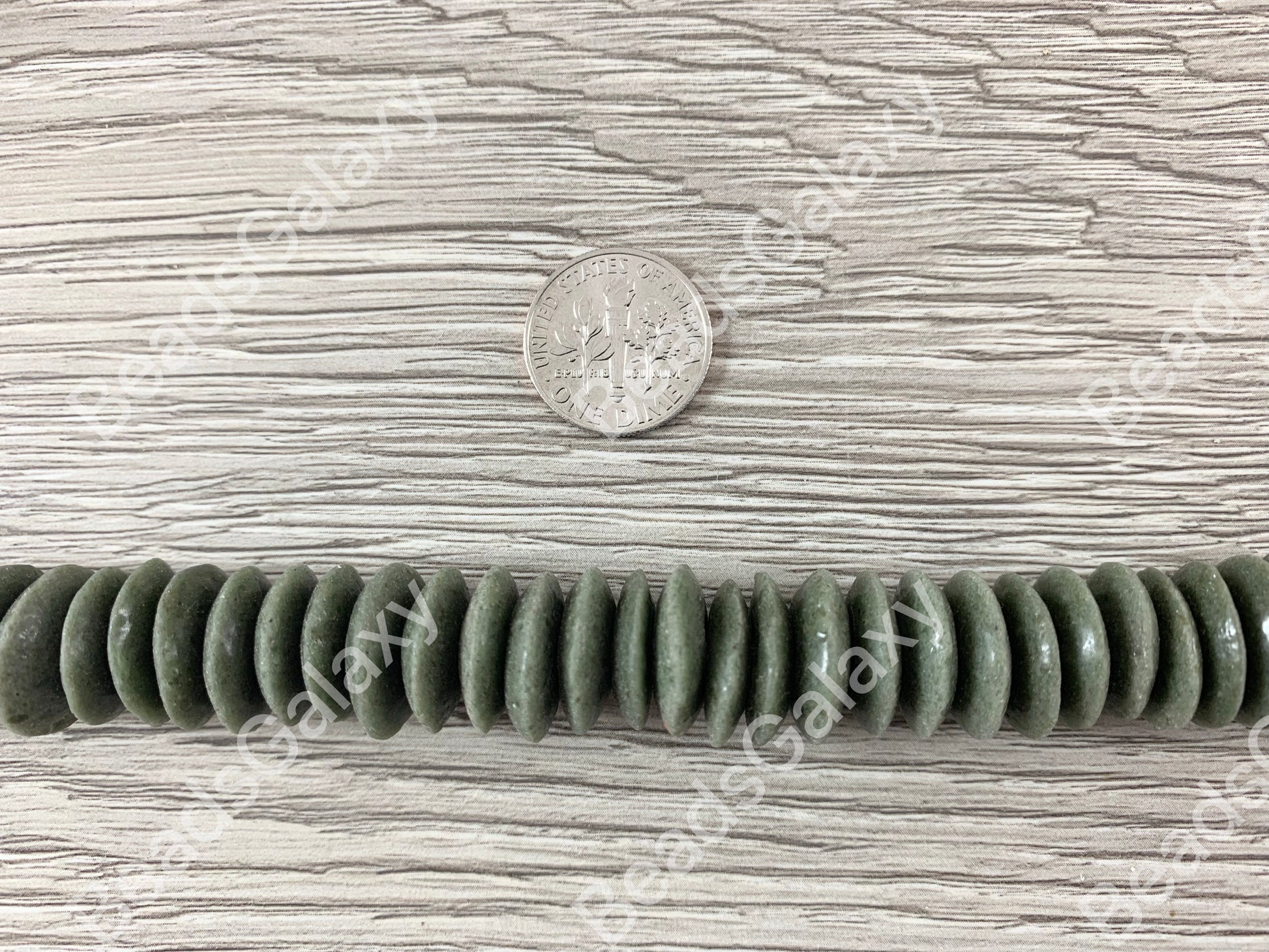 Handmade Dark Green Sea Glass Power Saucer Rondelle Beads From Ghana Africa
