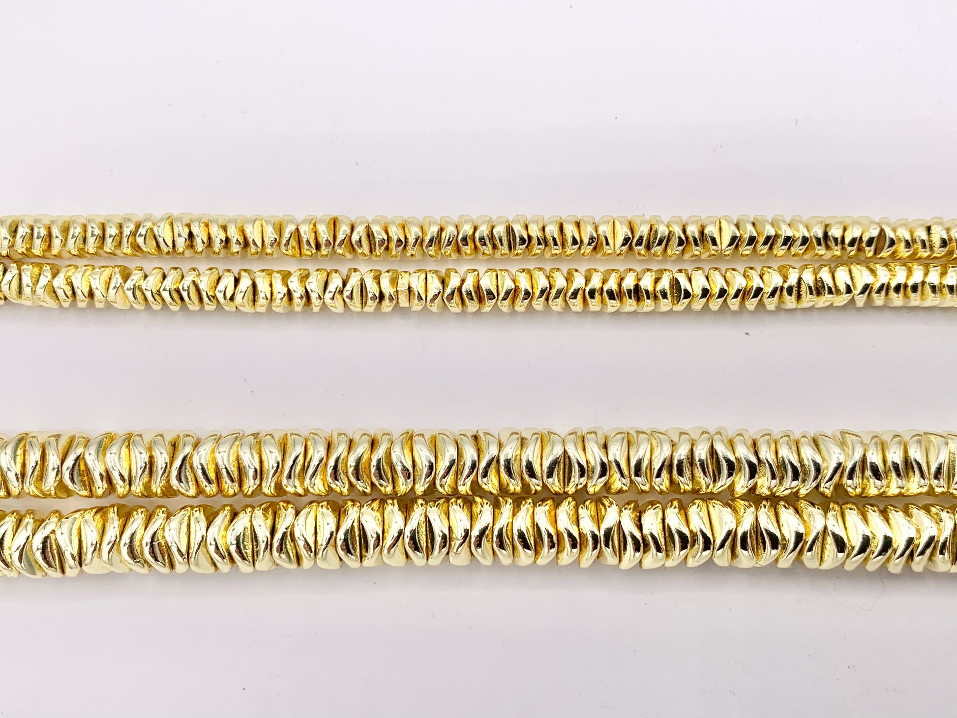 Hematite Wavy Disc Shiny Spacer Beads | Real 18K Gold Plated Stone Beads 4mm 6mm Around 16"