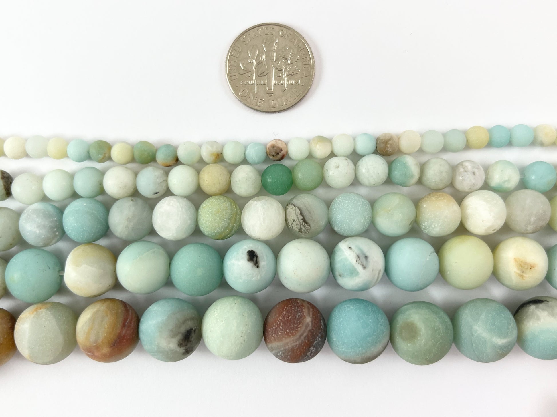 High Quality Matte Amazonite Round Smooth Natural Blue Brown Frosted Stone Beads 14"-15"