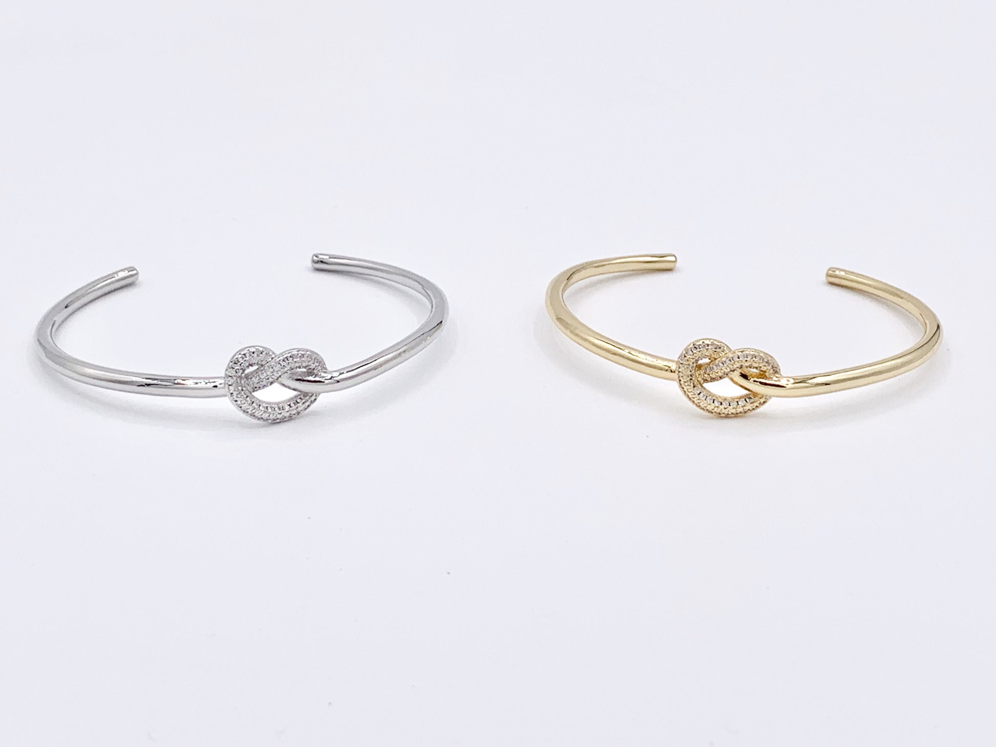 Knot Simple Minimal CZ Pave Knot Rhinestone Bracelet Cuffs in Real Gold/Platinum 18K Plated Copper 1 pc