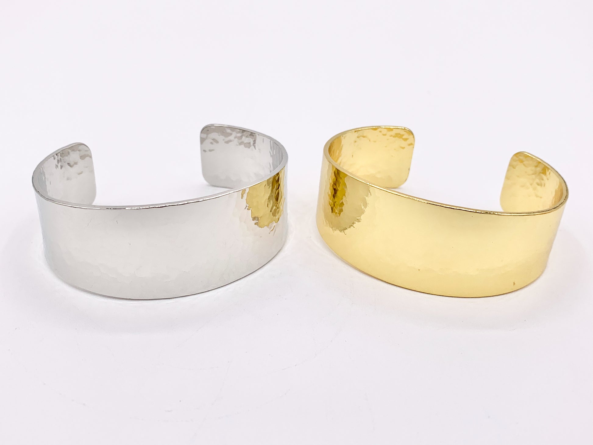 Large Chunky Thick Hammered Plain Adjustable Bracelet Cuffs in 18K Gold Plating or Silver Plating 2 PCS