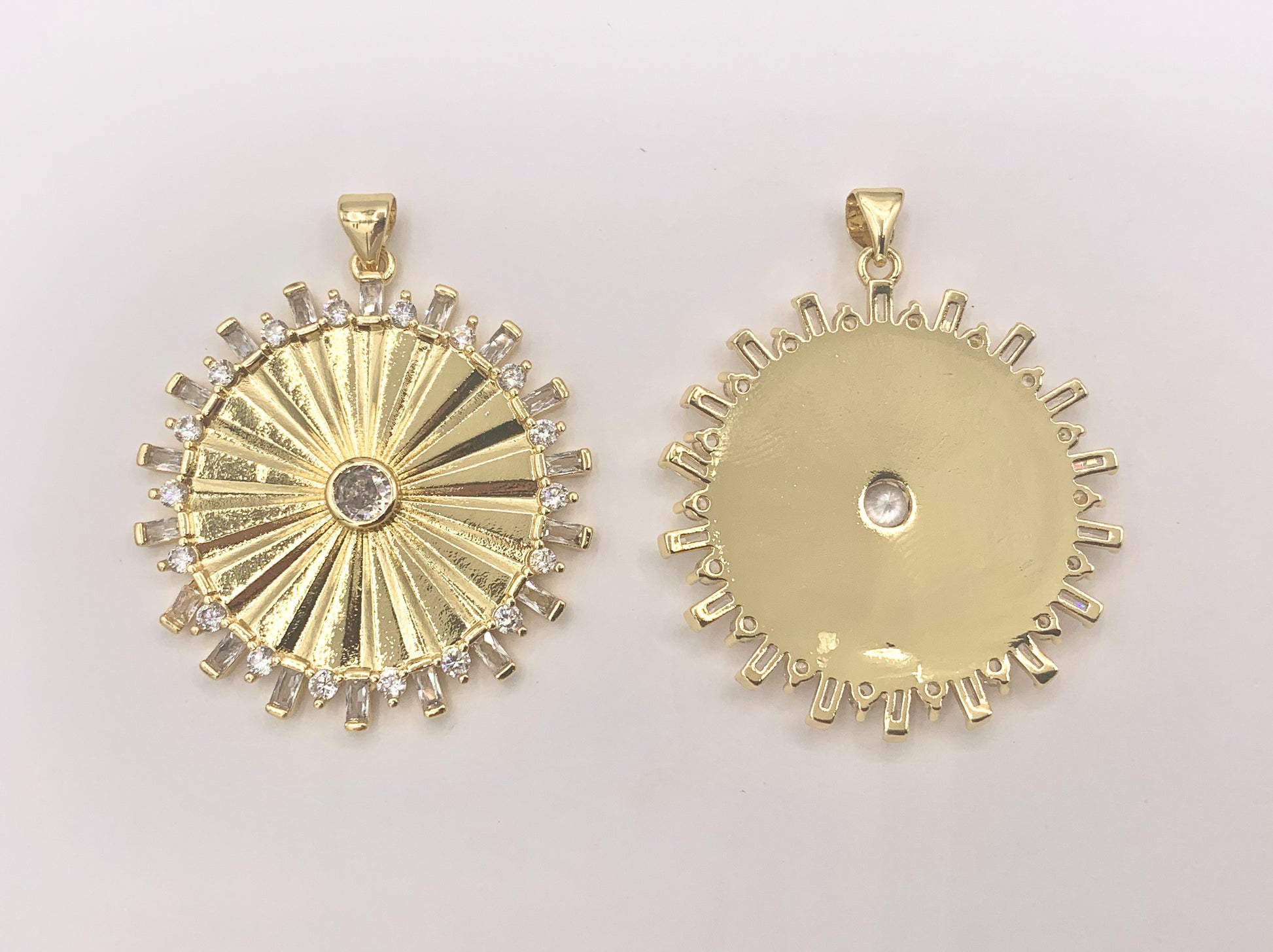 Large CZ Pave Coin Pendant in 18K Gold plated Copper 5 PCS