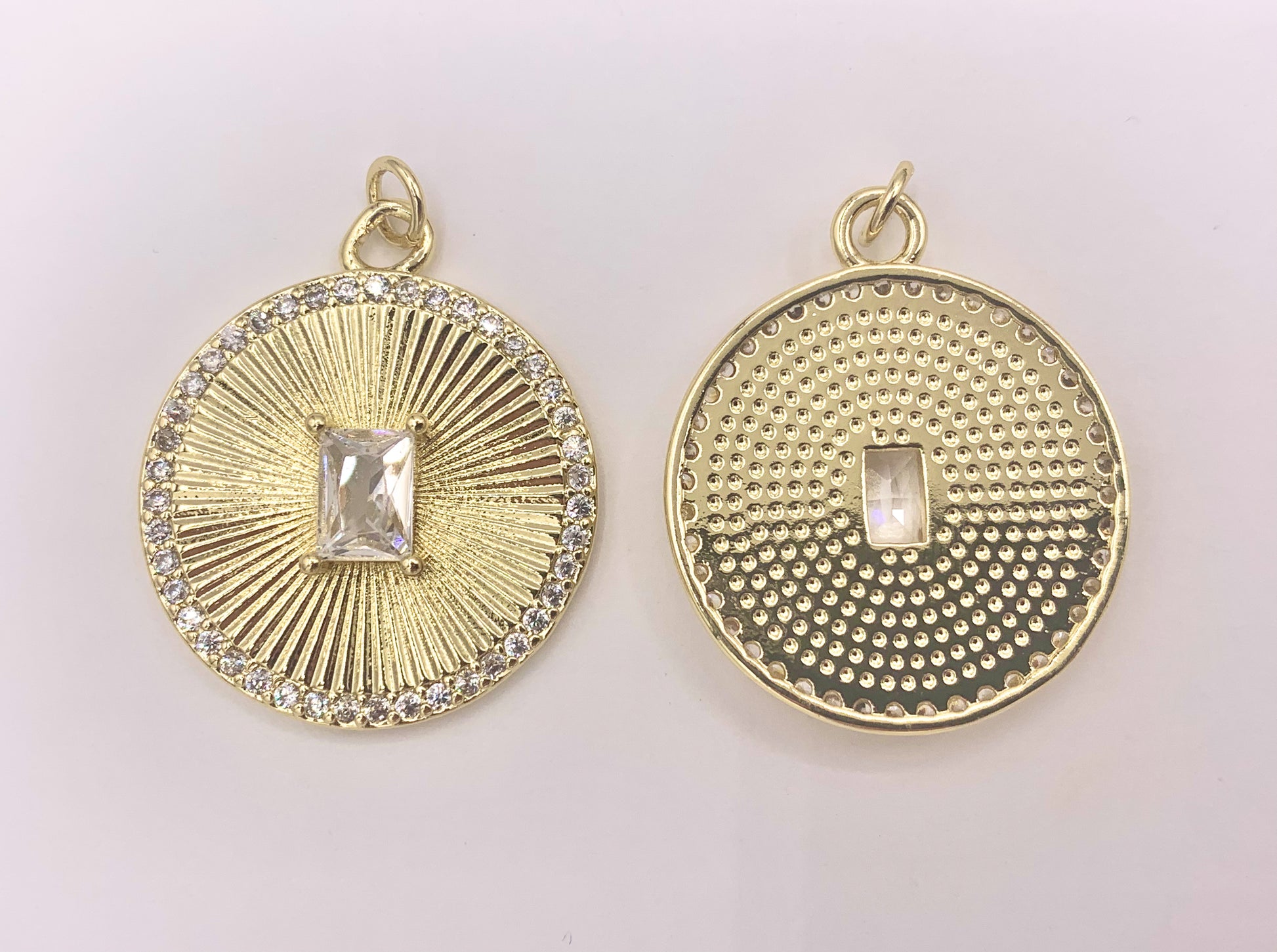 Large CZ Pave Coin Pendant in 18K Gold plated Copper 6 PCS