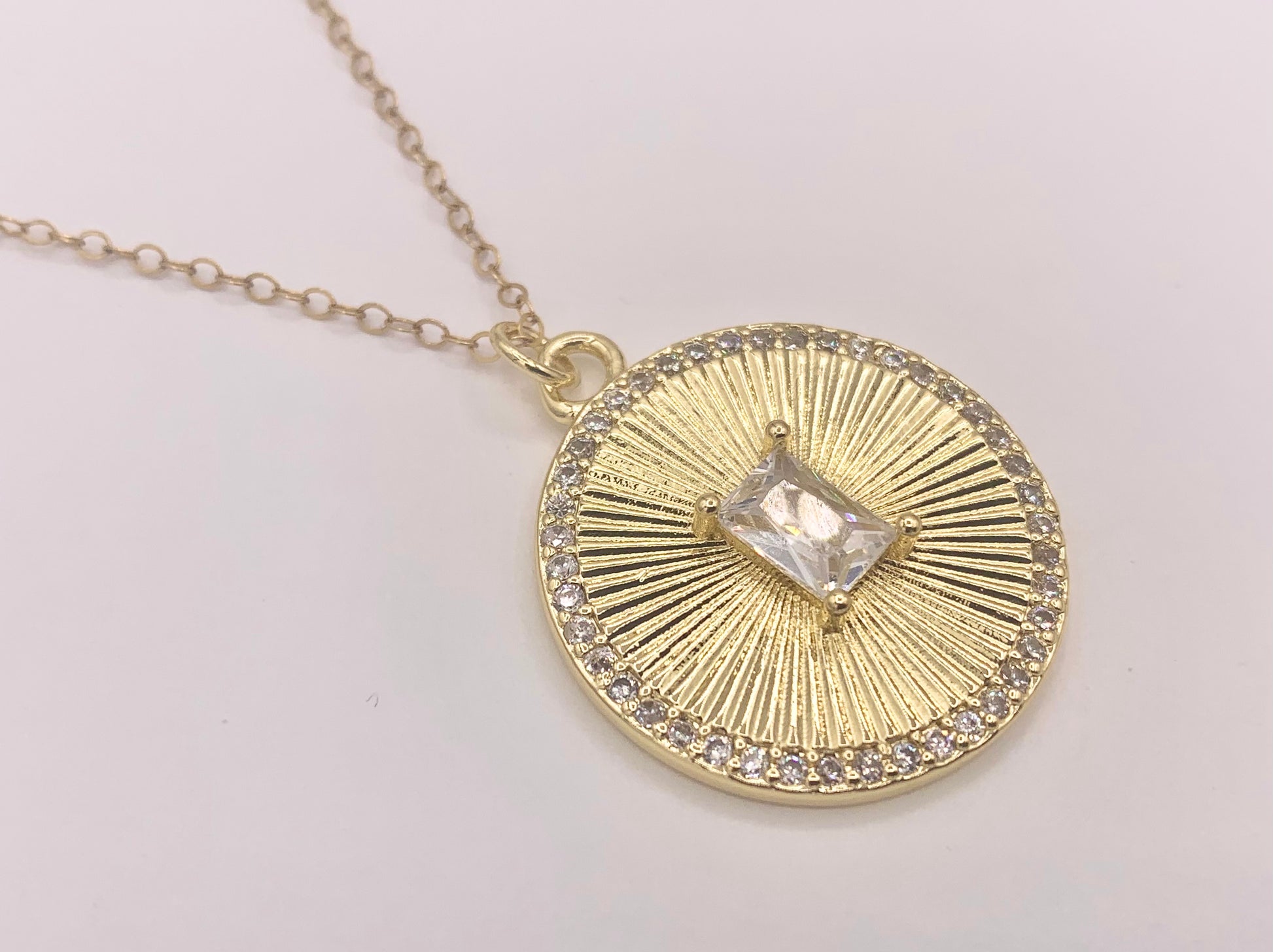 Large CZ Pave Coin Pendant in 18K Gold plated Copper