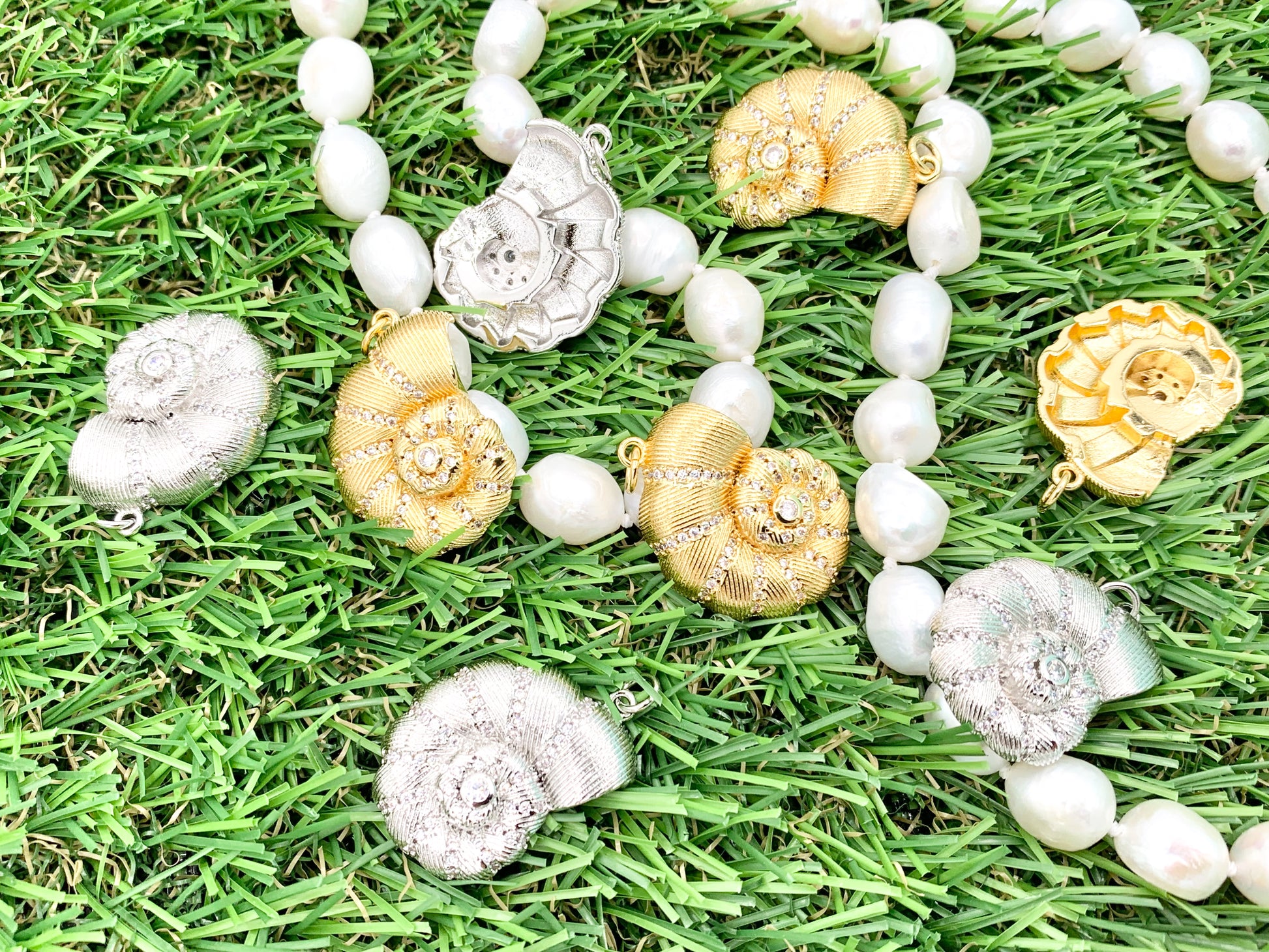 Cute Conch Shell Charms plated in 18K Gold/Platinum Copper Base. These charms can be wonderful made into bracelets, dainty necklaces, earring drops and even used for crafts.