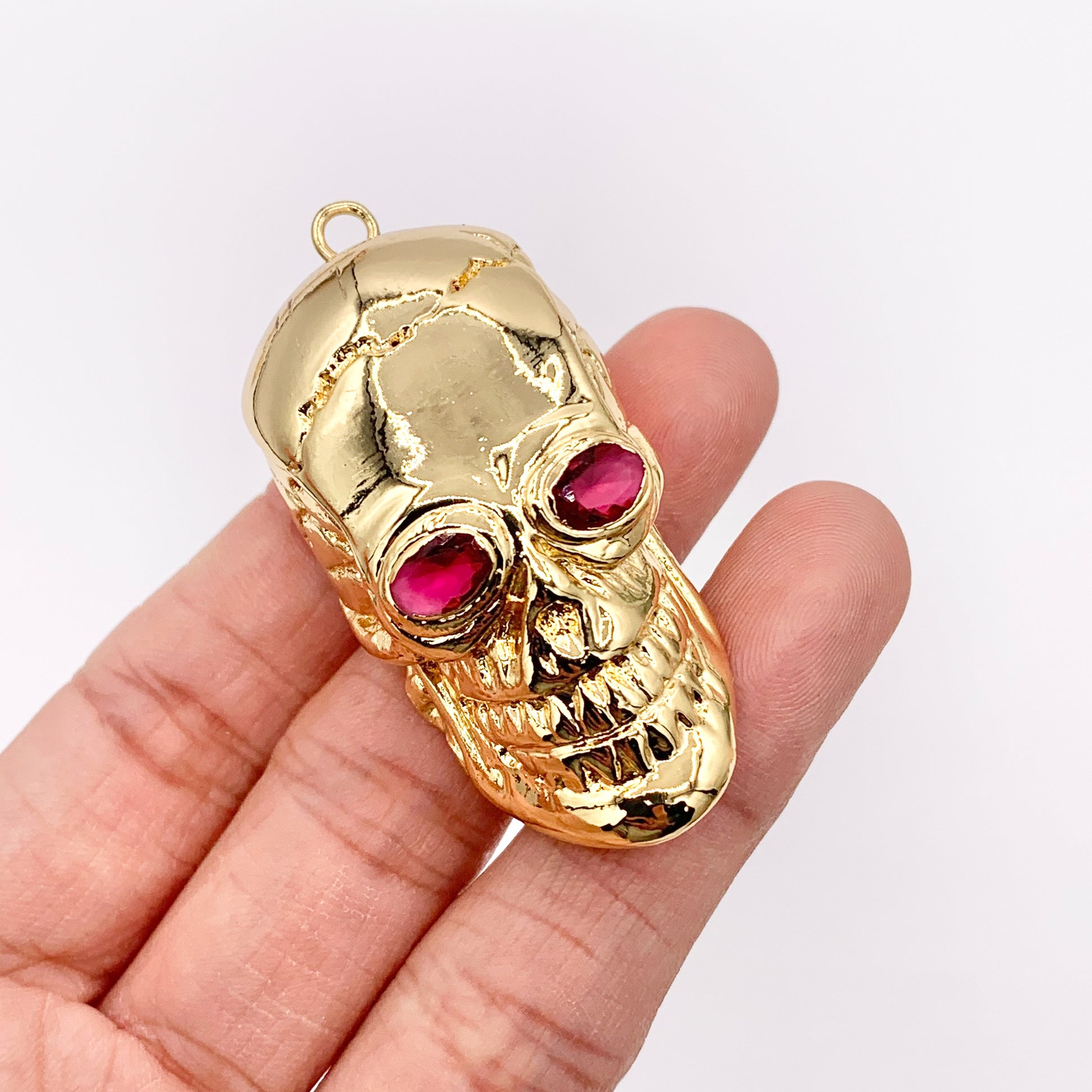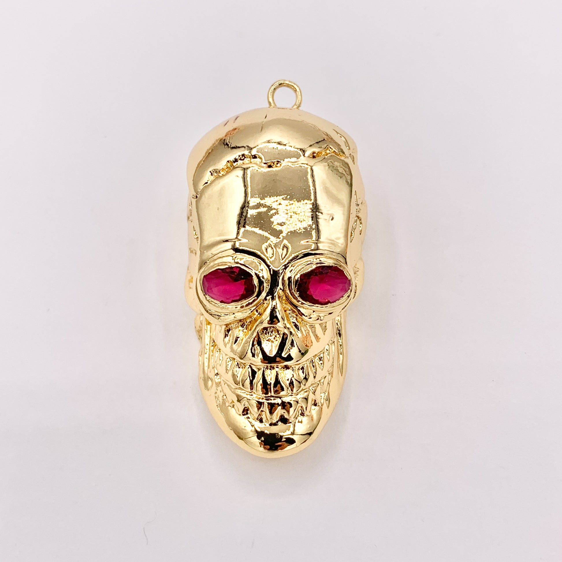 Large Gold Skull Pendant With Red CZ Pave Plated in 18K Gold Copper Base 1 PC
