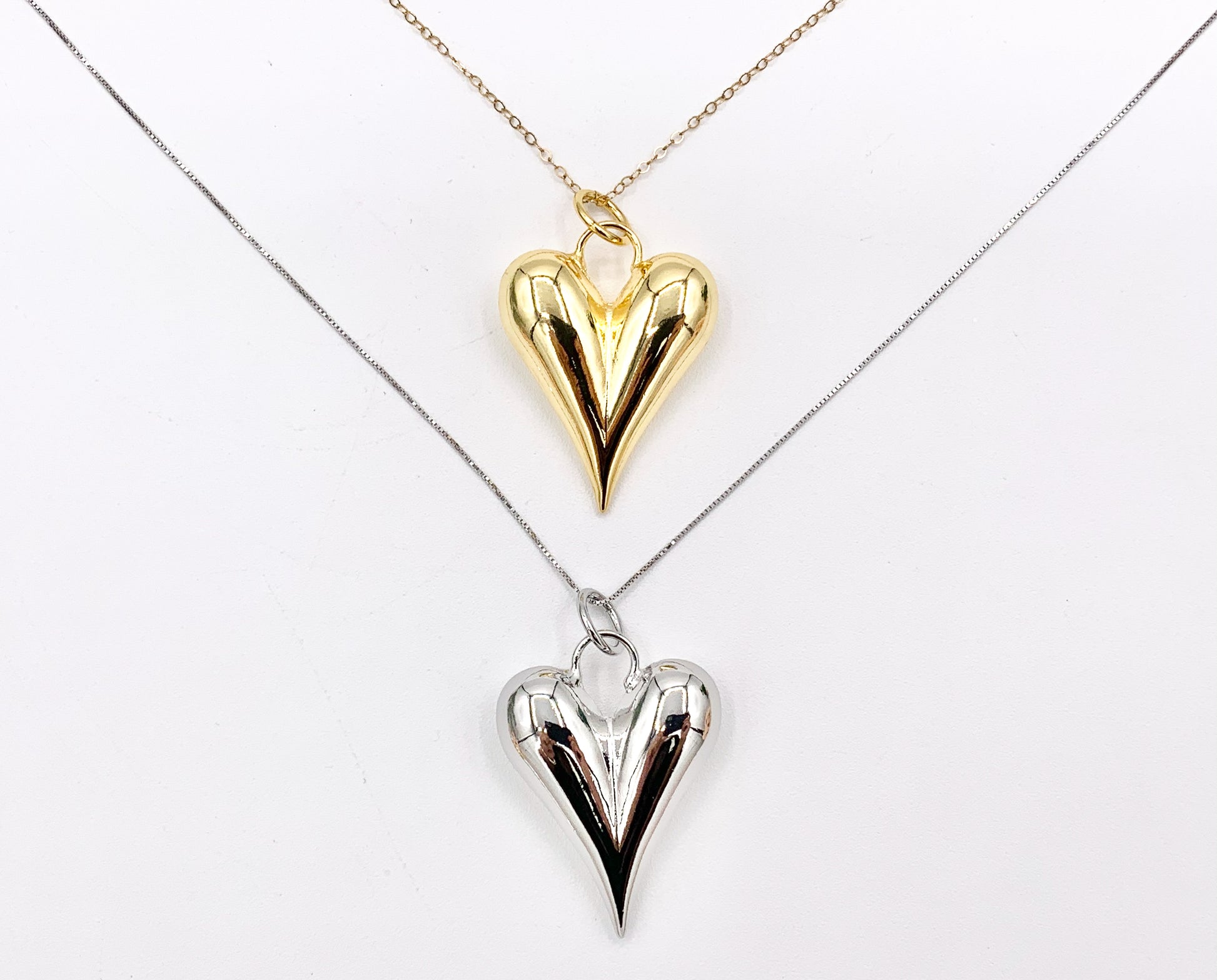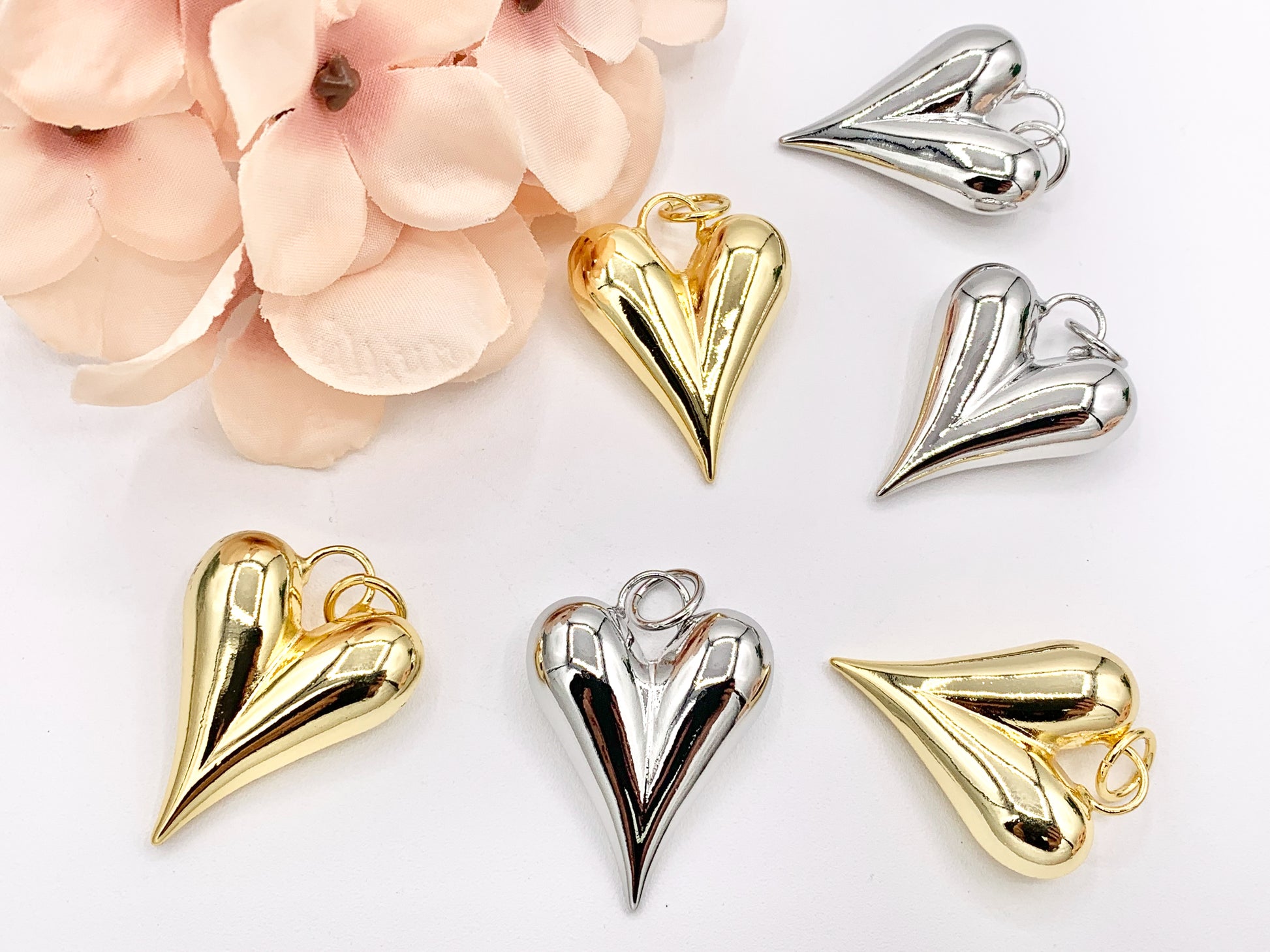 Puffy Heart Pendant Charms in 18K Gold or Silver Plated Copper