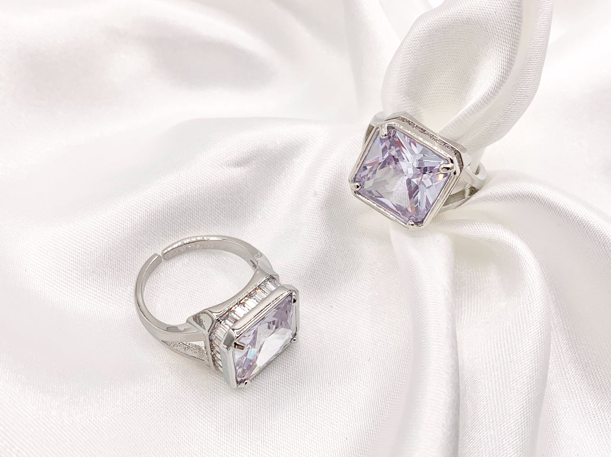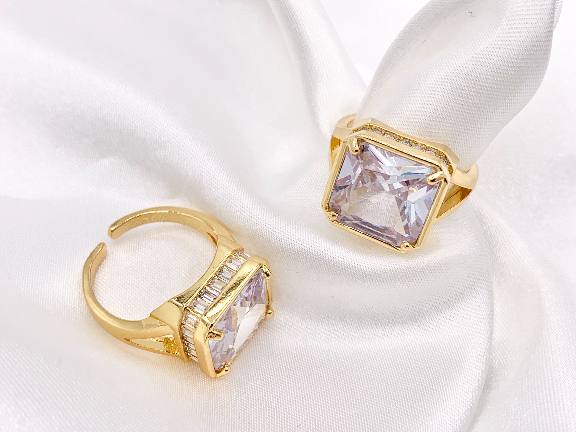 Large Square Asscher Cut Rhinestone Rings in Real 18K Gold and Platinum Plated CZ Pave Adjustable Statement Ring 3 pcs