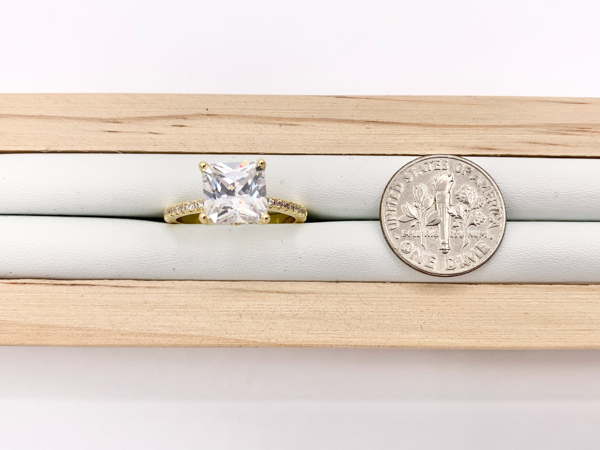 Large Square Rhinestone Rings in Real 18K Gold Plated CZ Pave Adjustable Statement Ring