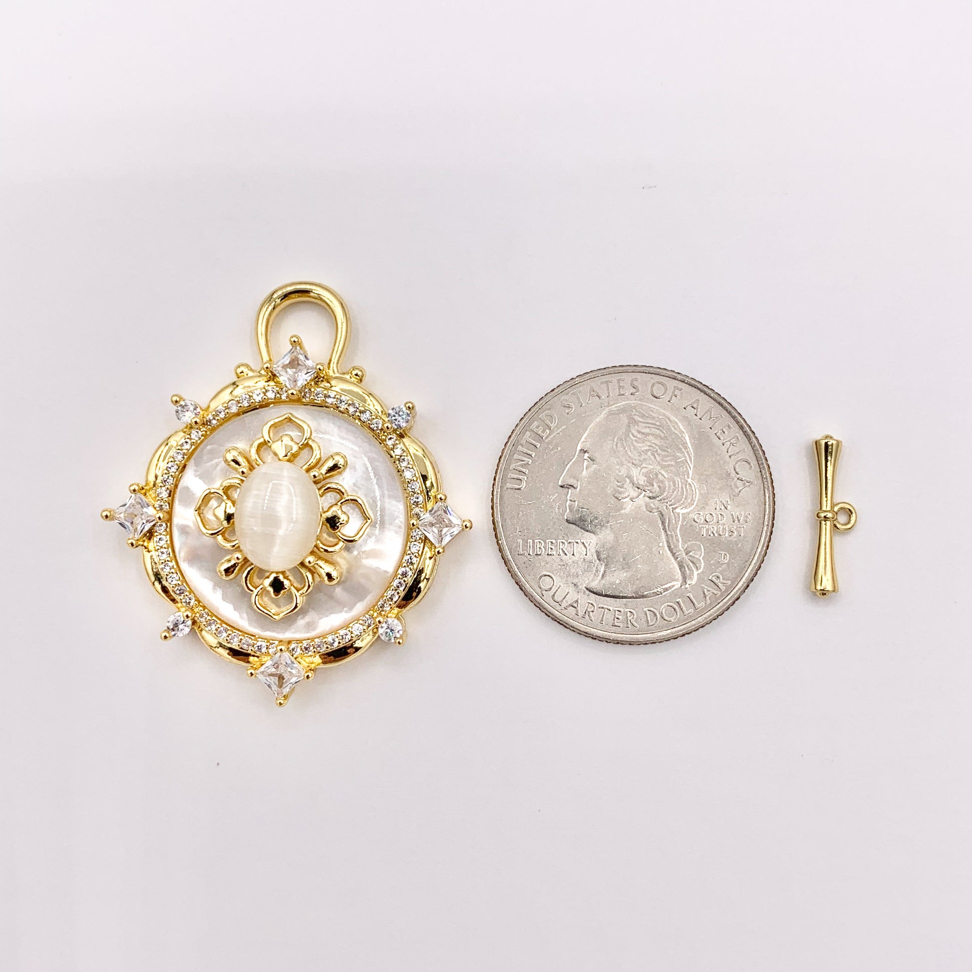 Large White Lip Shell Toggle/Pendant in 18K Gold Plated CZ Pave Jewelry Component 3 SETS