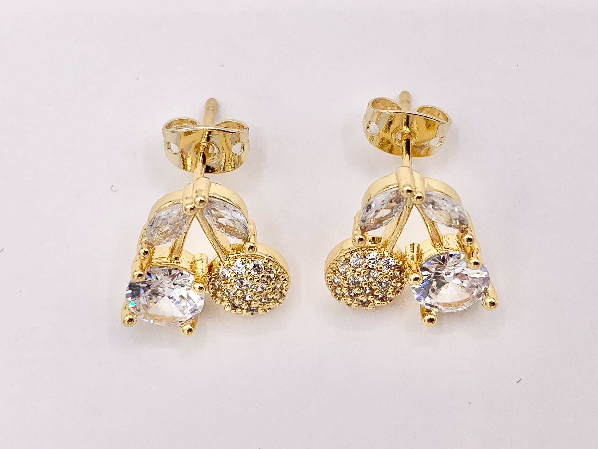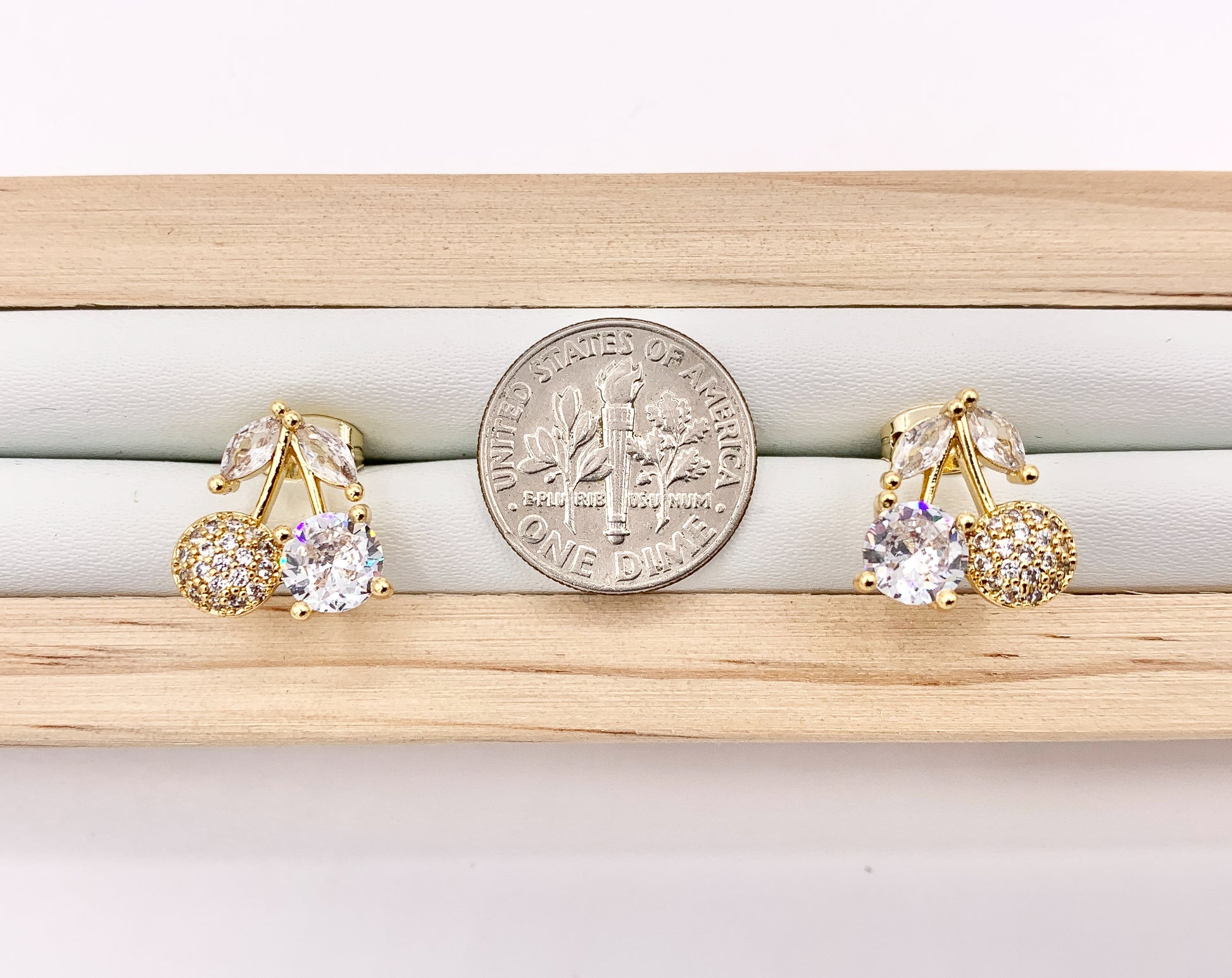 Luxury CZ Pave Cherry Stud Earrings in Real Gold 18K Micro CZ Pave Over Copper 4 PAIRS