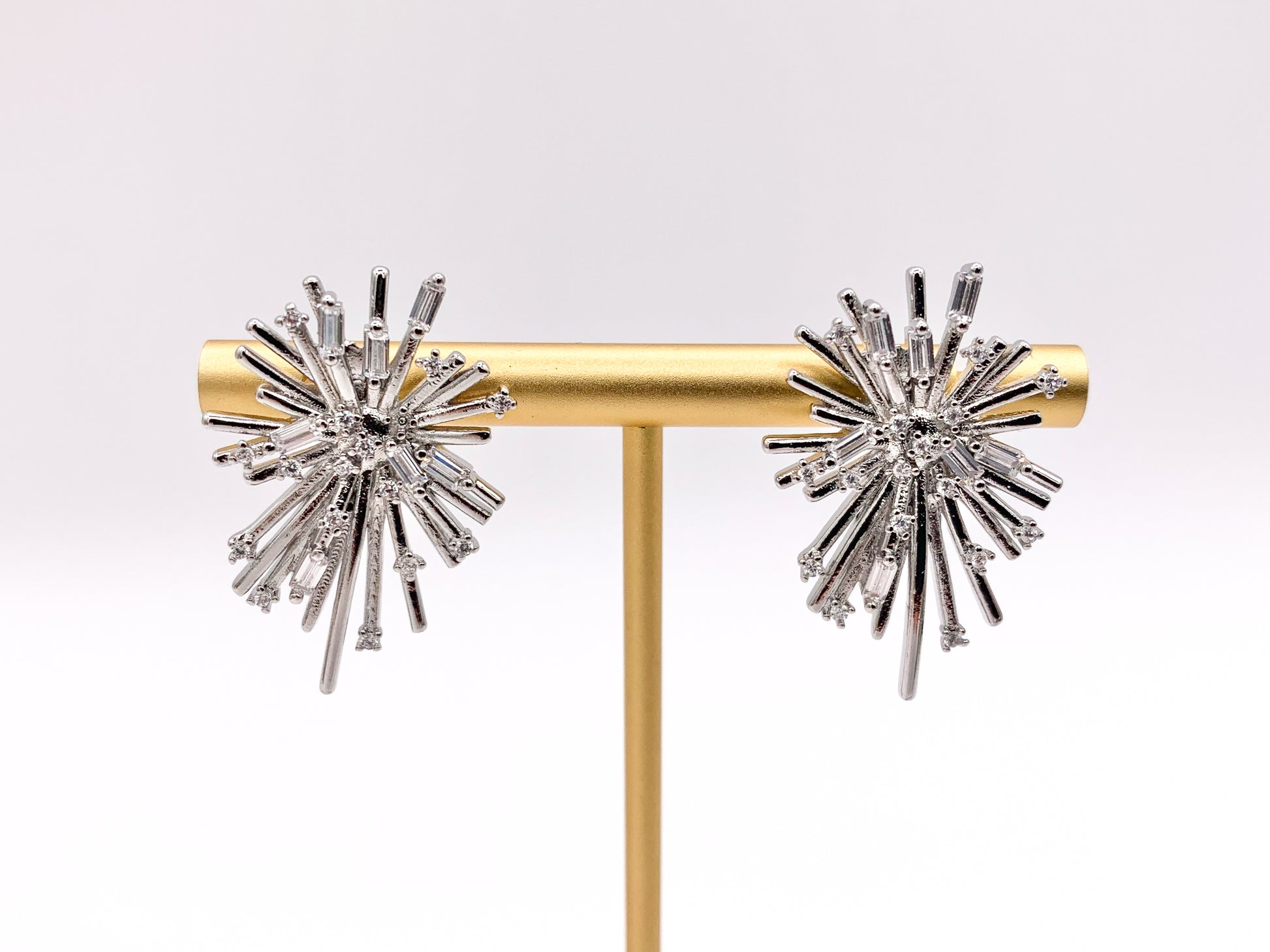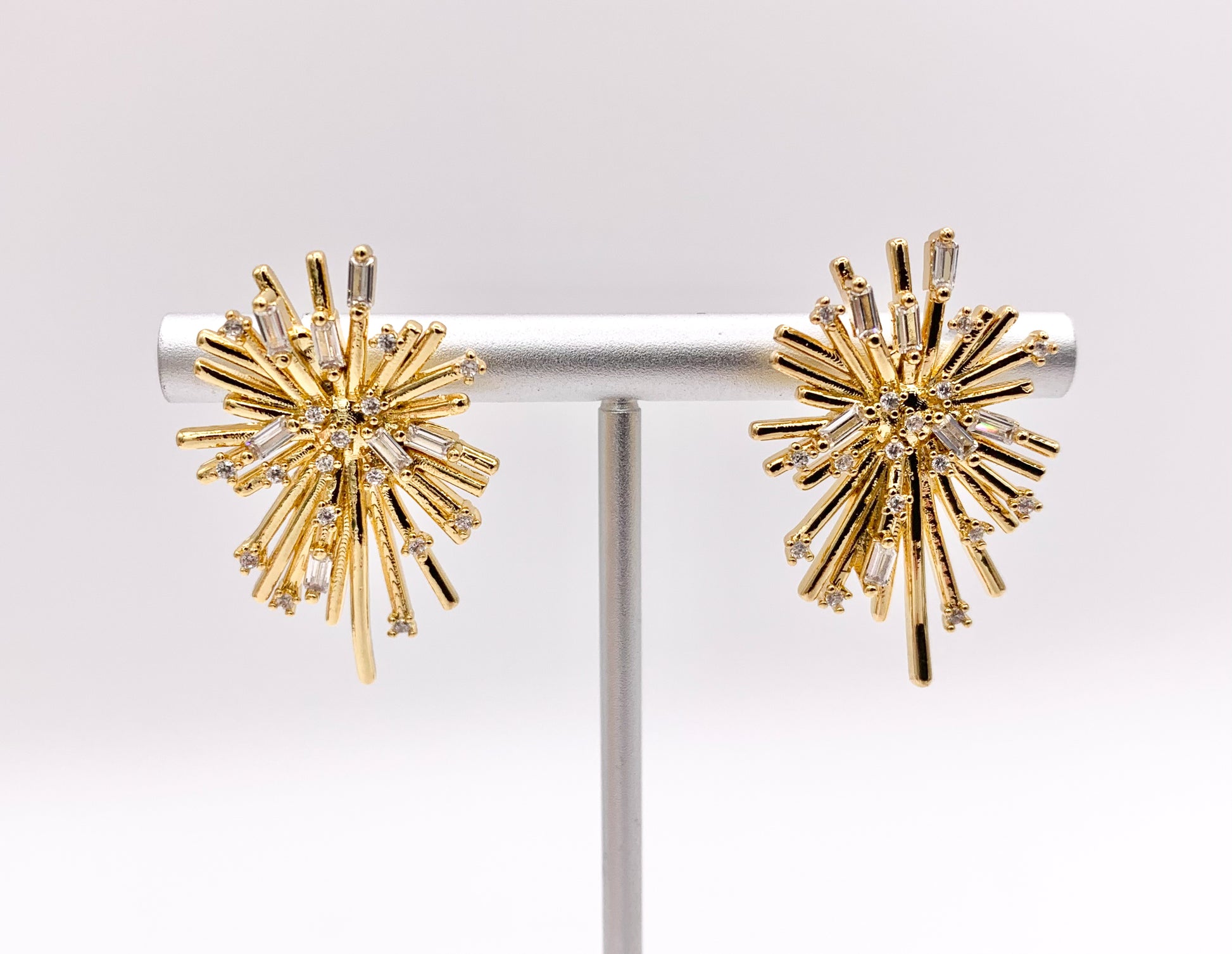 Gold CZ Pave Rhinestone Fireworks Earring in 18k Gold and Silver Over Copper