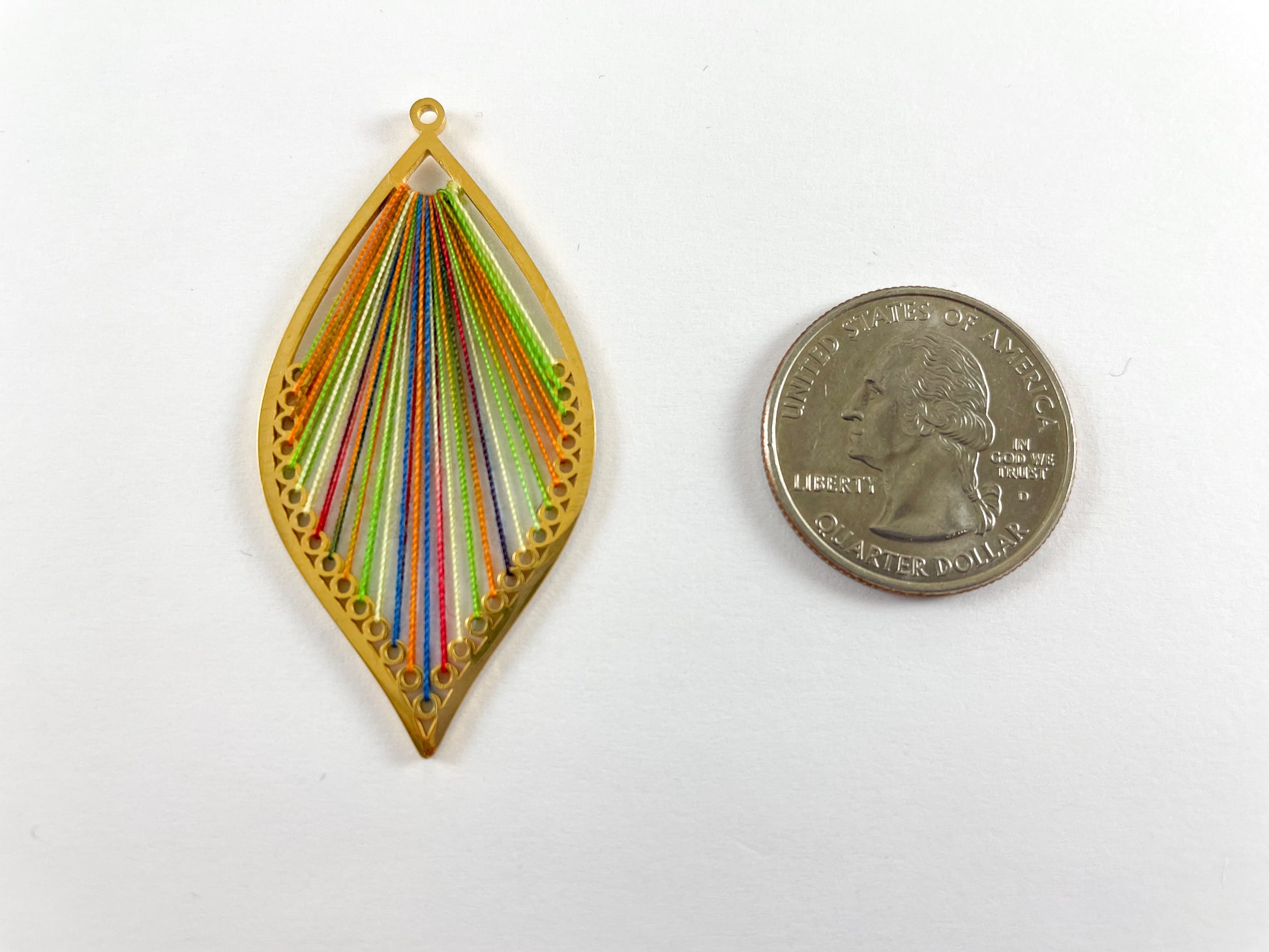 These beautiful unique Marquis Pendants are gold/silver plated and delicately sewn with rainbow silk. These will make a nice pair of light weight, dazzling earrings.