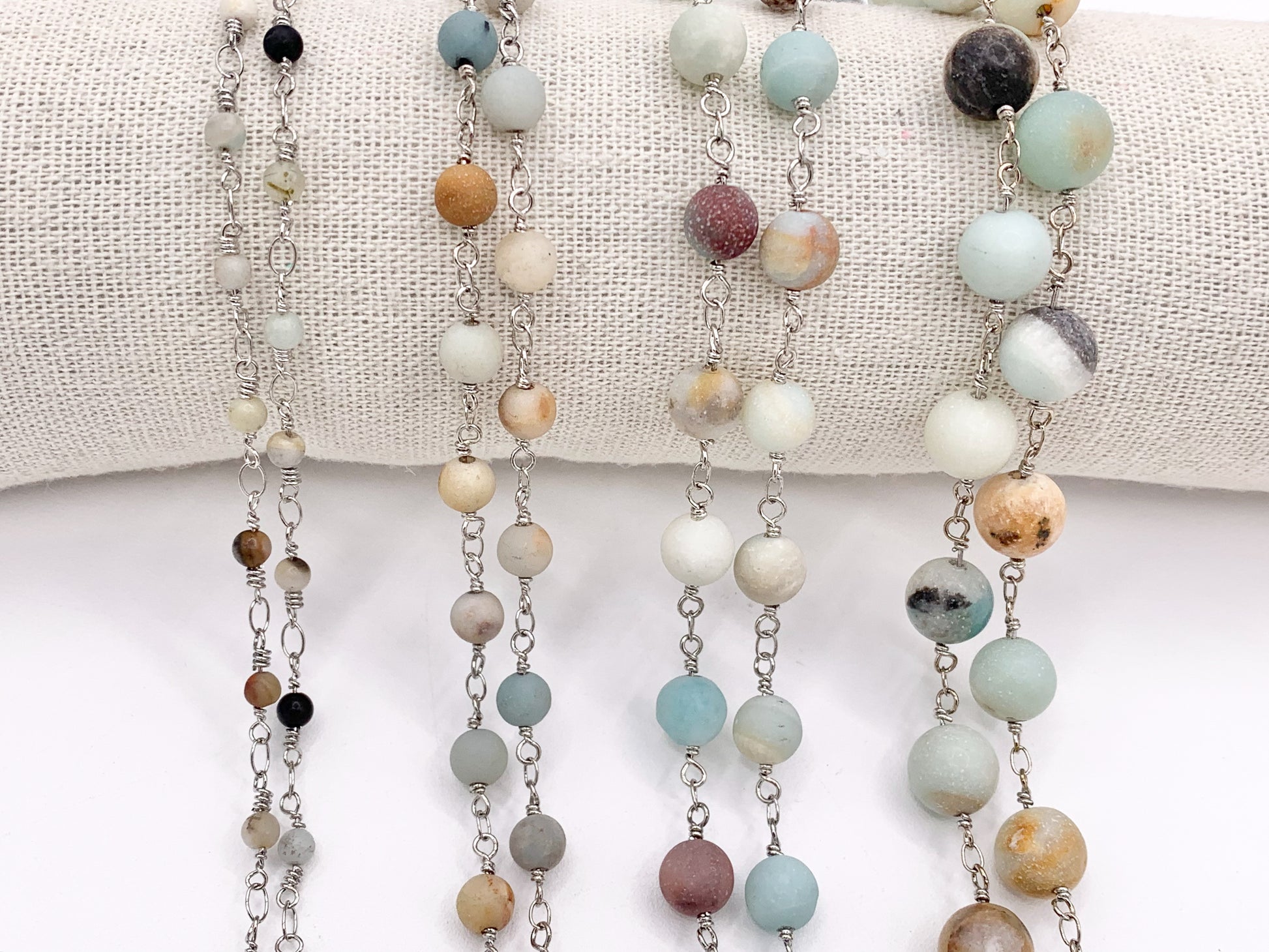 Matte Amazonite Round Smooth Rosary Style Beaded Wired Chain With Silver Wire By Spool 4mm 6mm 8mm 10mm