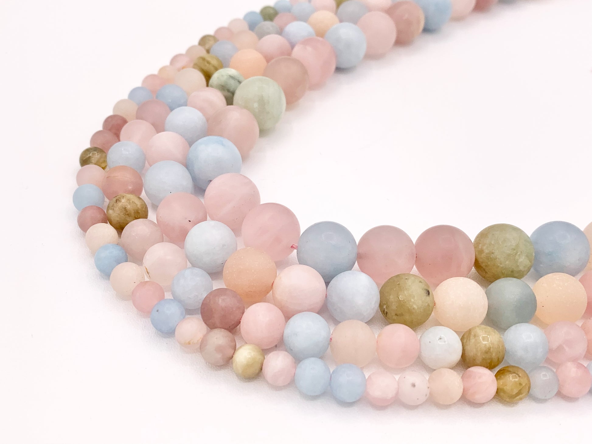 Matte Aquamarine Morganite Mixed Round Natural Gemstone Beads Pastel Pink Blue Color Beads 6mm 8mm 10mm 12mm 15"- 16"