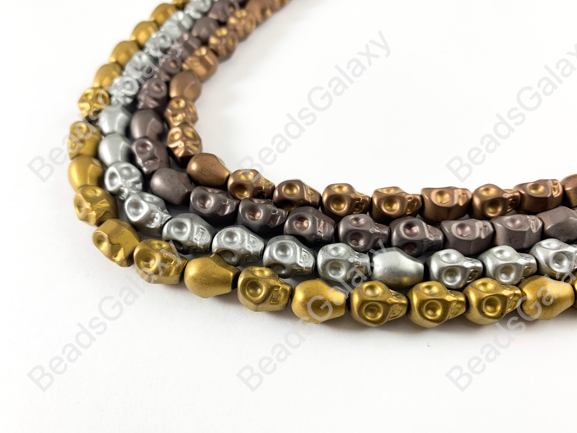 Matte Hematite Skull Beads Around 15"-16"