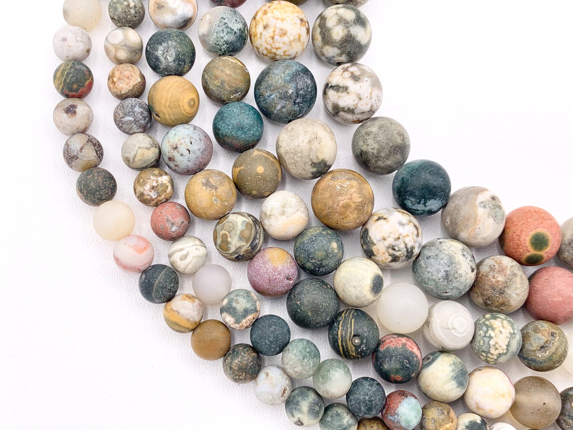 Matte Natural Ocean Jasper Round Smooth Natural Gemstone Beads For Men/Women's Jewelry Making 15"-16" 6mm 8mm 10mm