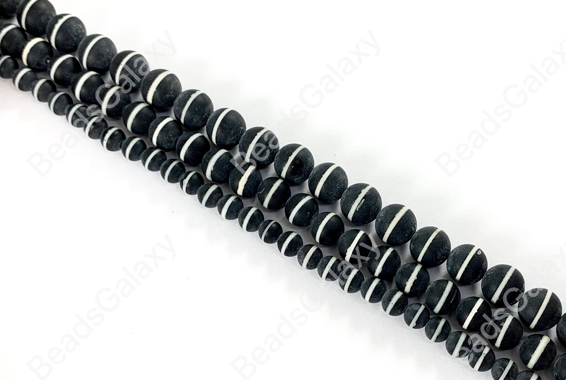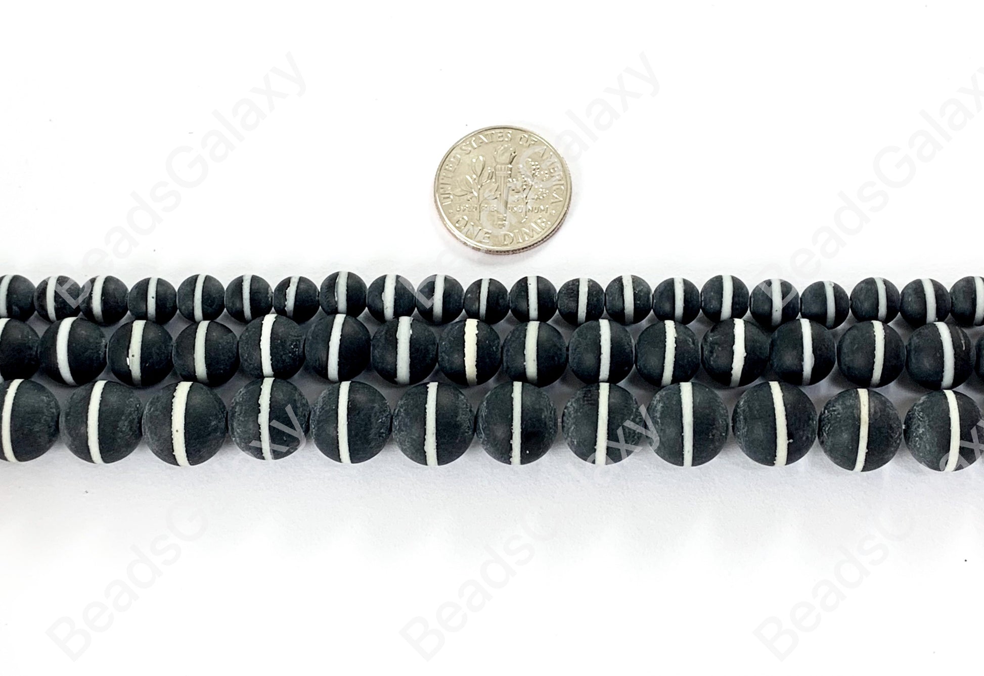 Matte Solid Black Onyx Round Beads with White Stripe Natural Agate Gemstone Beads High Quality Healing Stone 6mm-10mm Around 15"