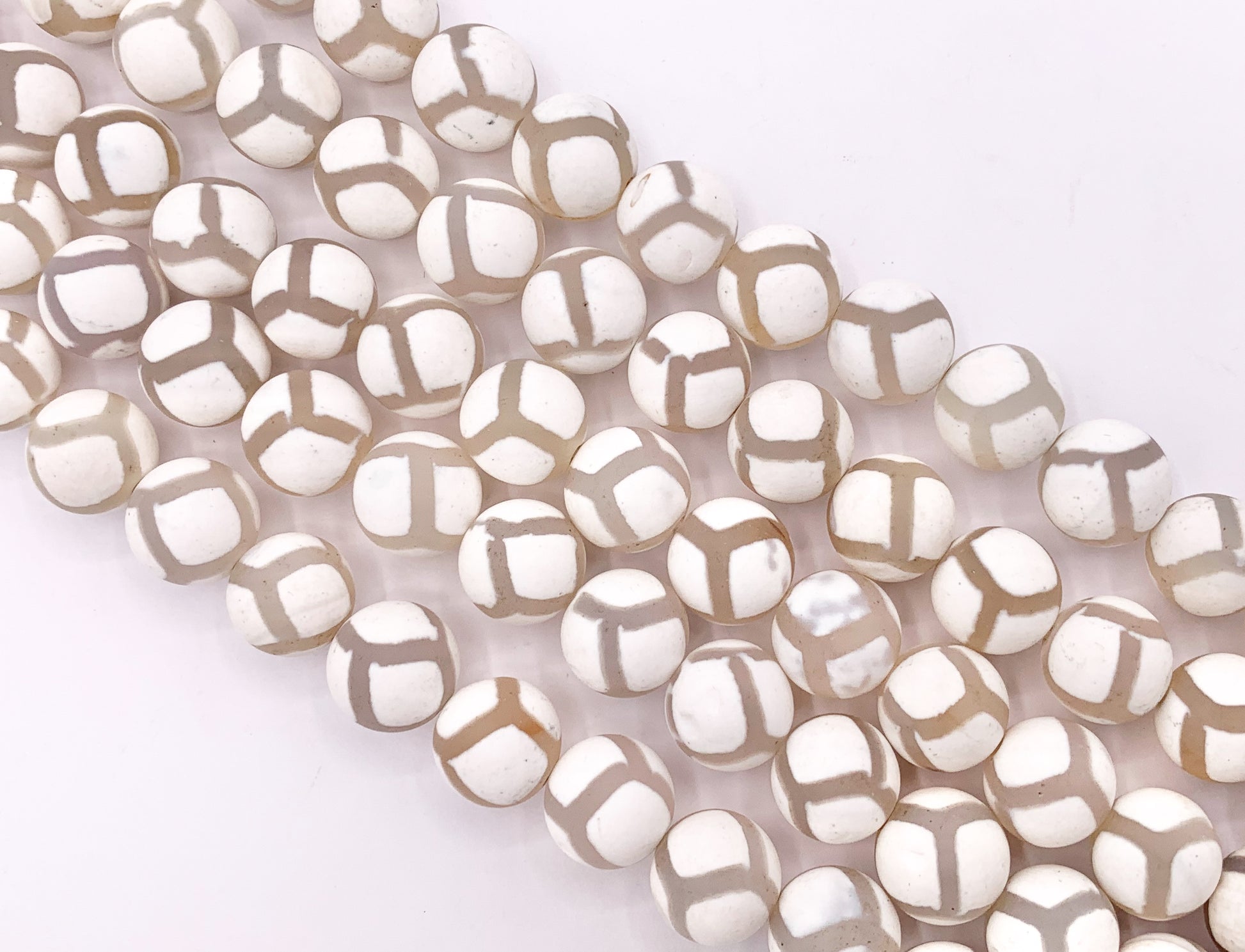 Matte White Tibetan Dzi Agate Round Natural Gemstone Beads 14"