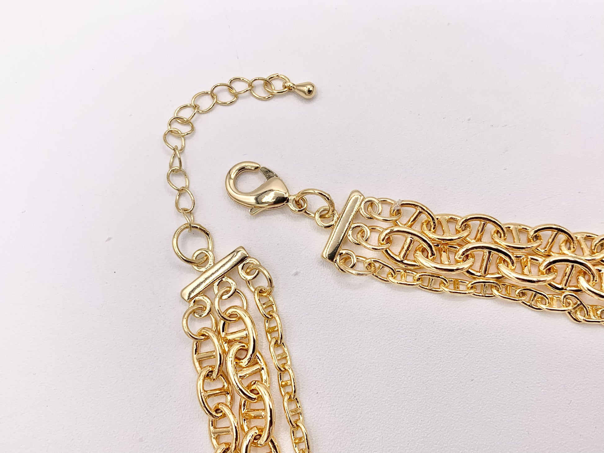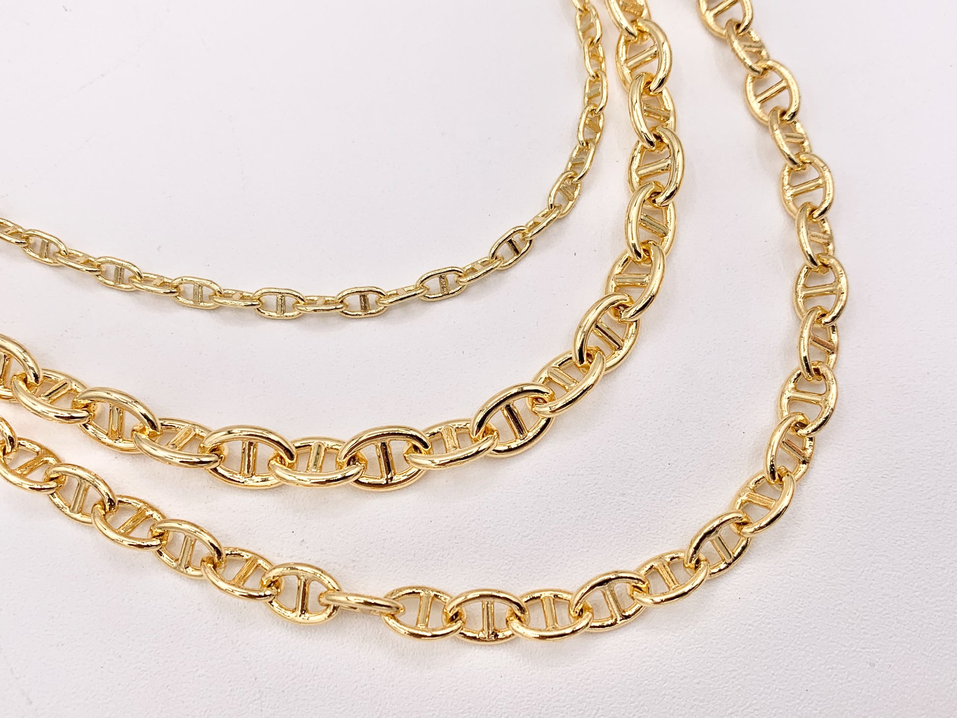 These beautiful 3 layer mariner link necklaces are made with Gold/silver plated copper.