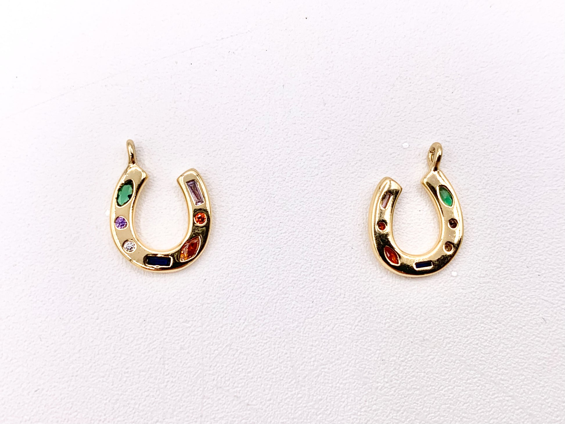Multicolor CZ Horseshoe U Charm in Real 18K Gold Plated Over Copper 8 PCS