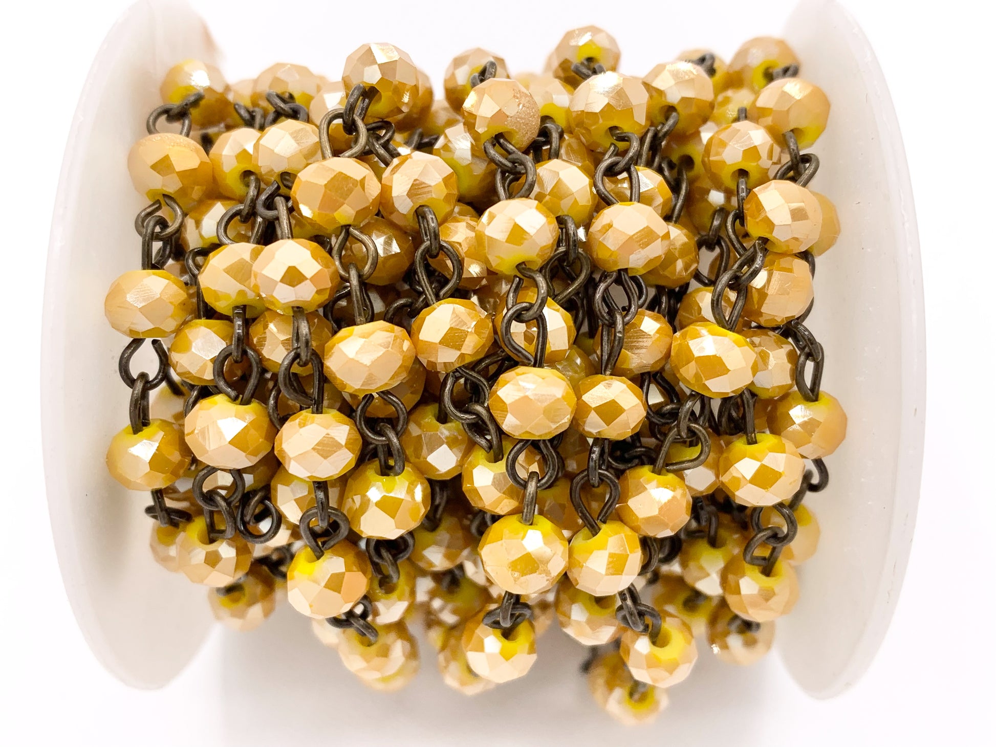 Mustard Yellow Crystal Rondelle Faceted Rosary Beaded Chain With Brass Wire By Spool 4mm 6mm 8mm