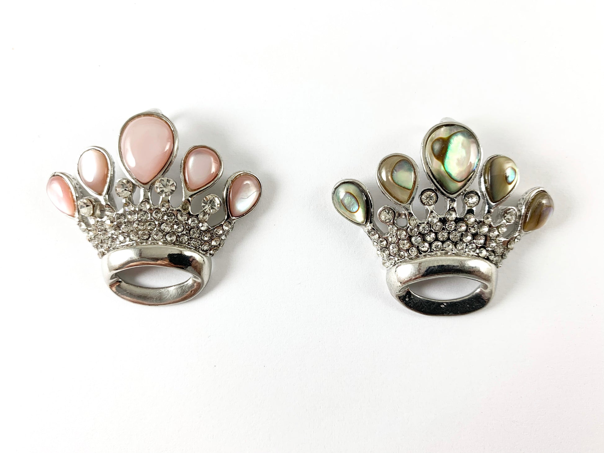 Natural Pink Conch Shell & Abalone Silver Rhinestone Princess Crown Pendant Queen Royal Tiara Pendant for Jewelry Making and Craft