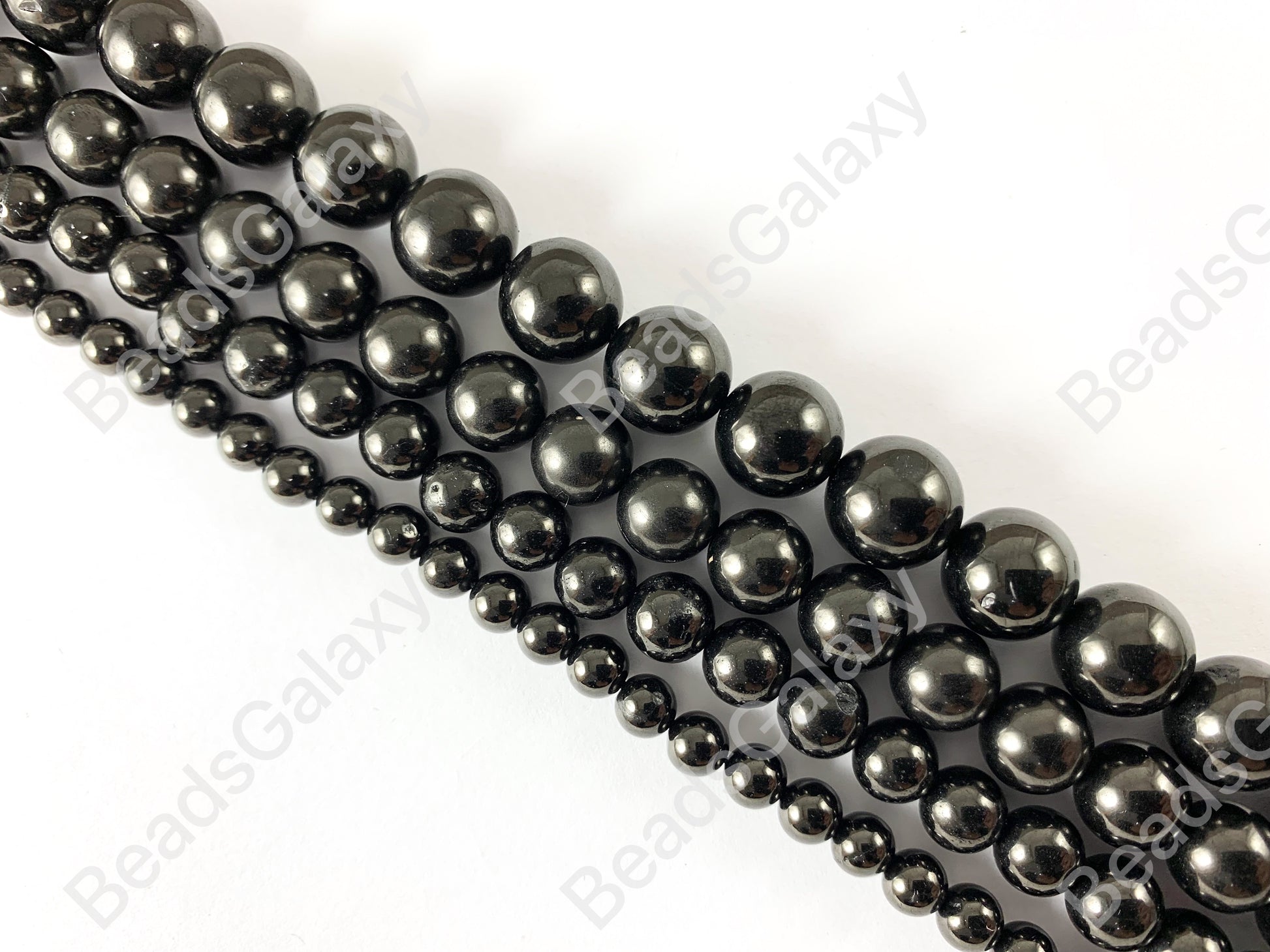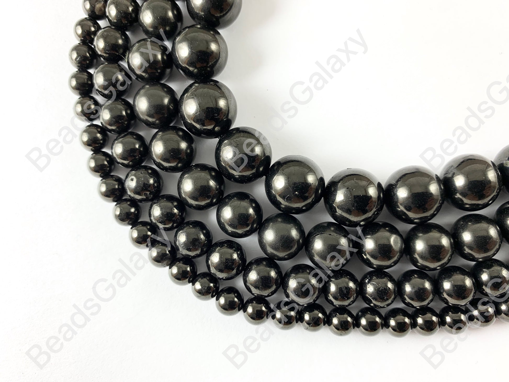 Natural Solid Black Shungite Round Smooth Beads Lightweight Shiny Natural Gemstone Healing Beads Around 15"