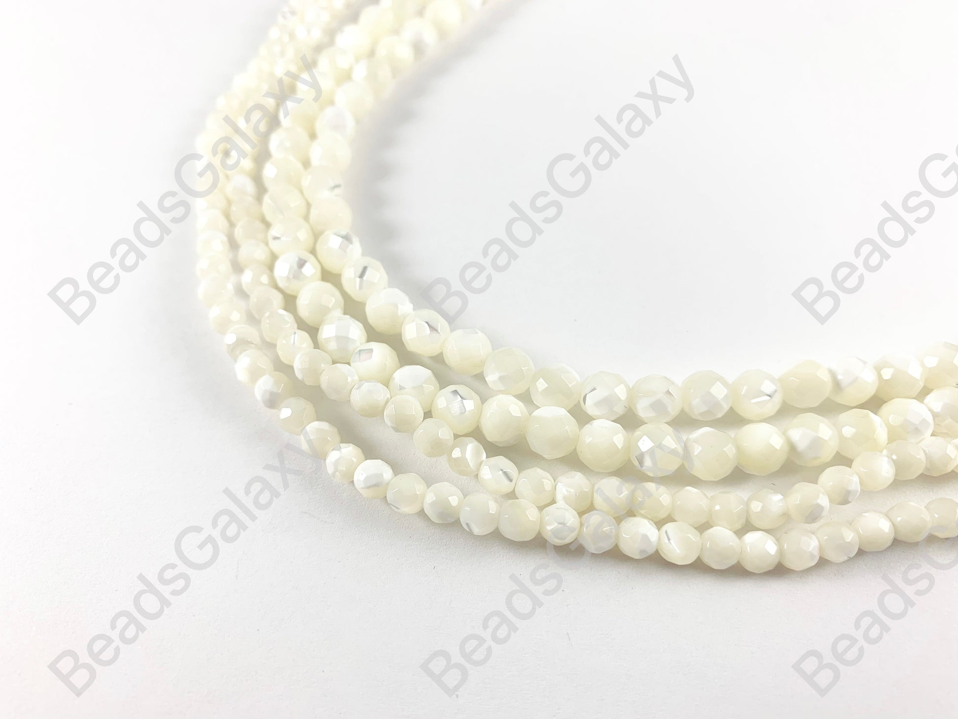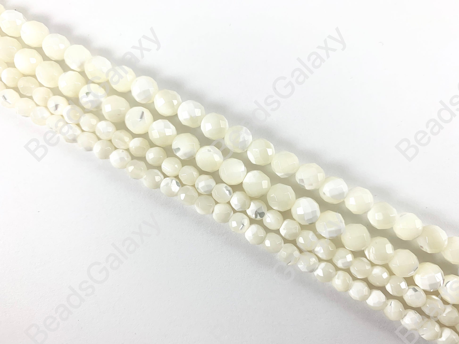 Natural Trocas/Trochidae Shell Faceted Mosaic Cream Round Beads Around 15"