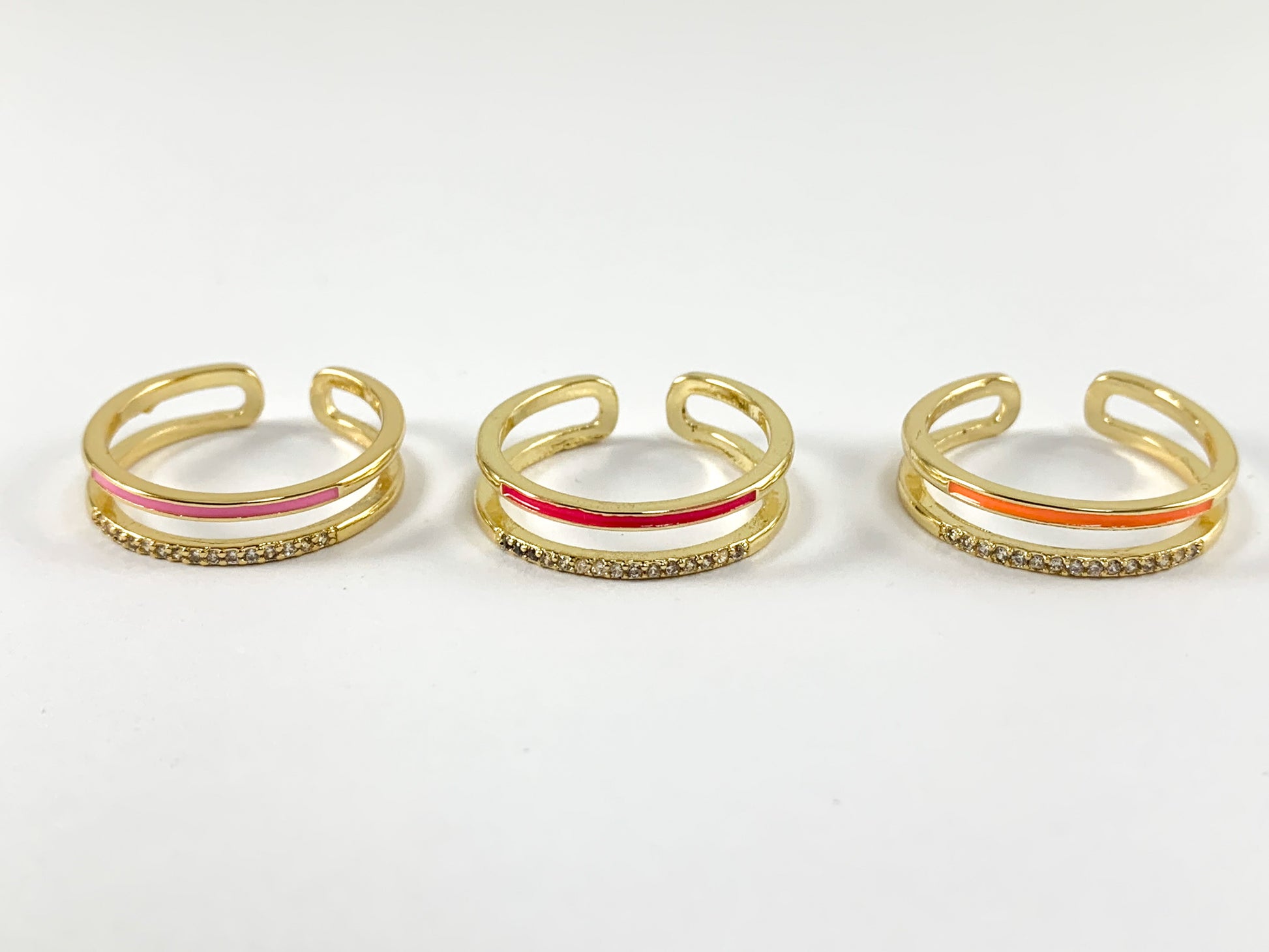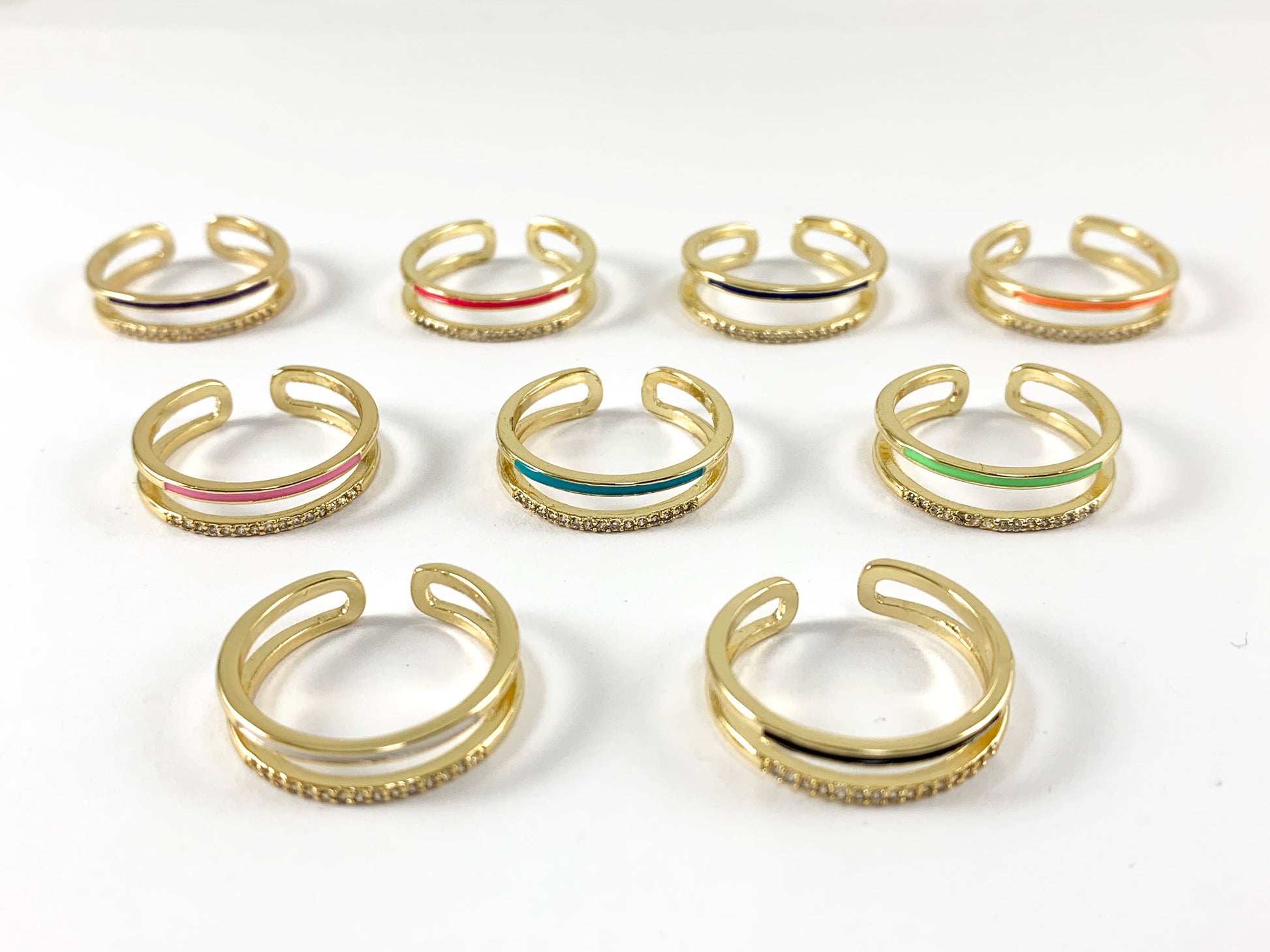 Neon Colorful Enamel 18K Gold Plated Copper CZ Pave Double Band Adjustable Ring 4pcs
