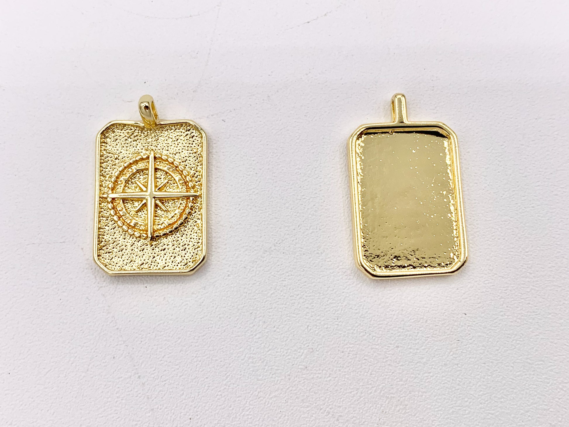 North Star Compass Rectangle Tag Pendant in 18K Gold plated Copper 8 pcs