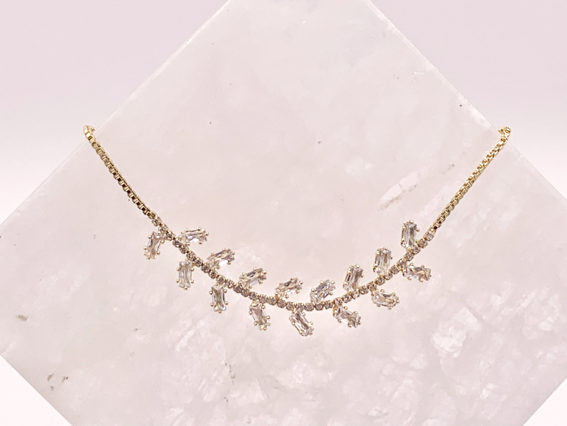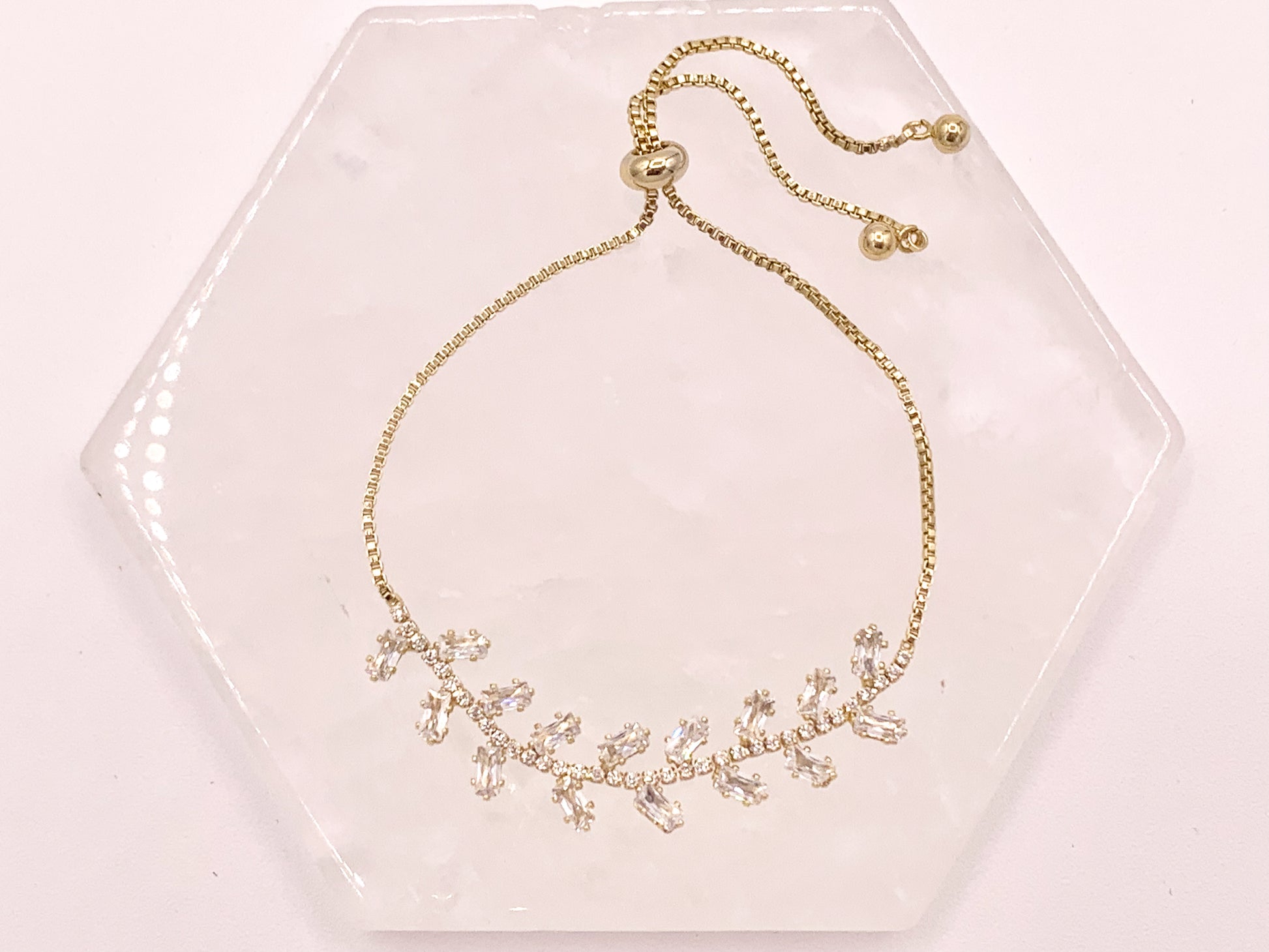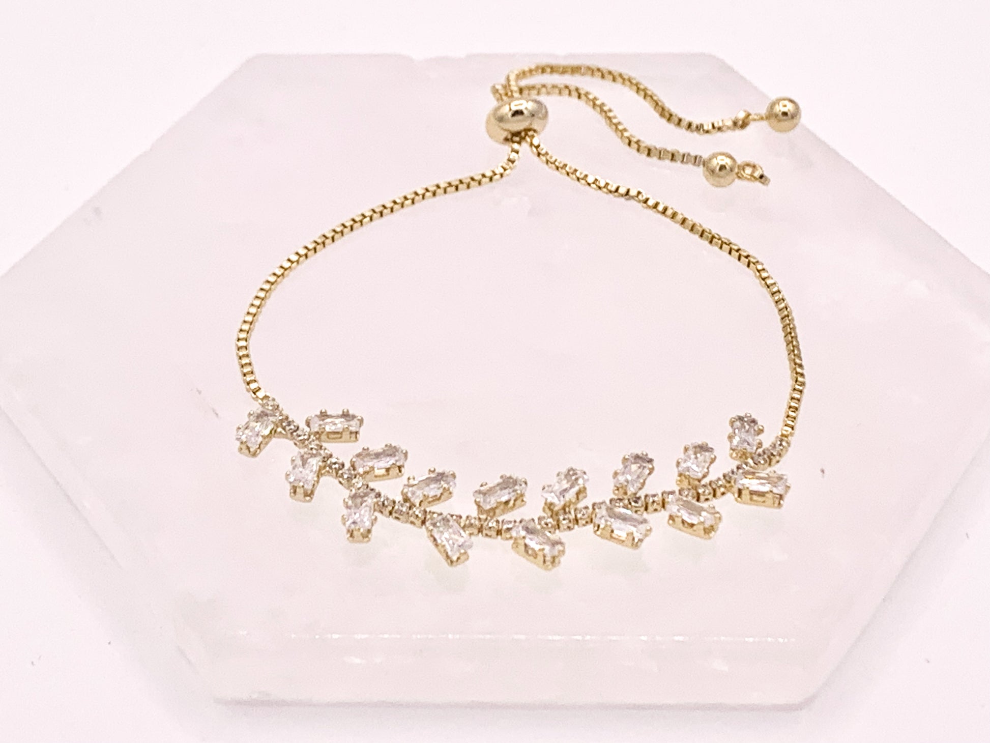 Olive Branch Style Cut CZ Pave Rhinestone Box Chain Dainty Slide Adjustable Bracelets