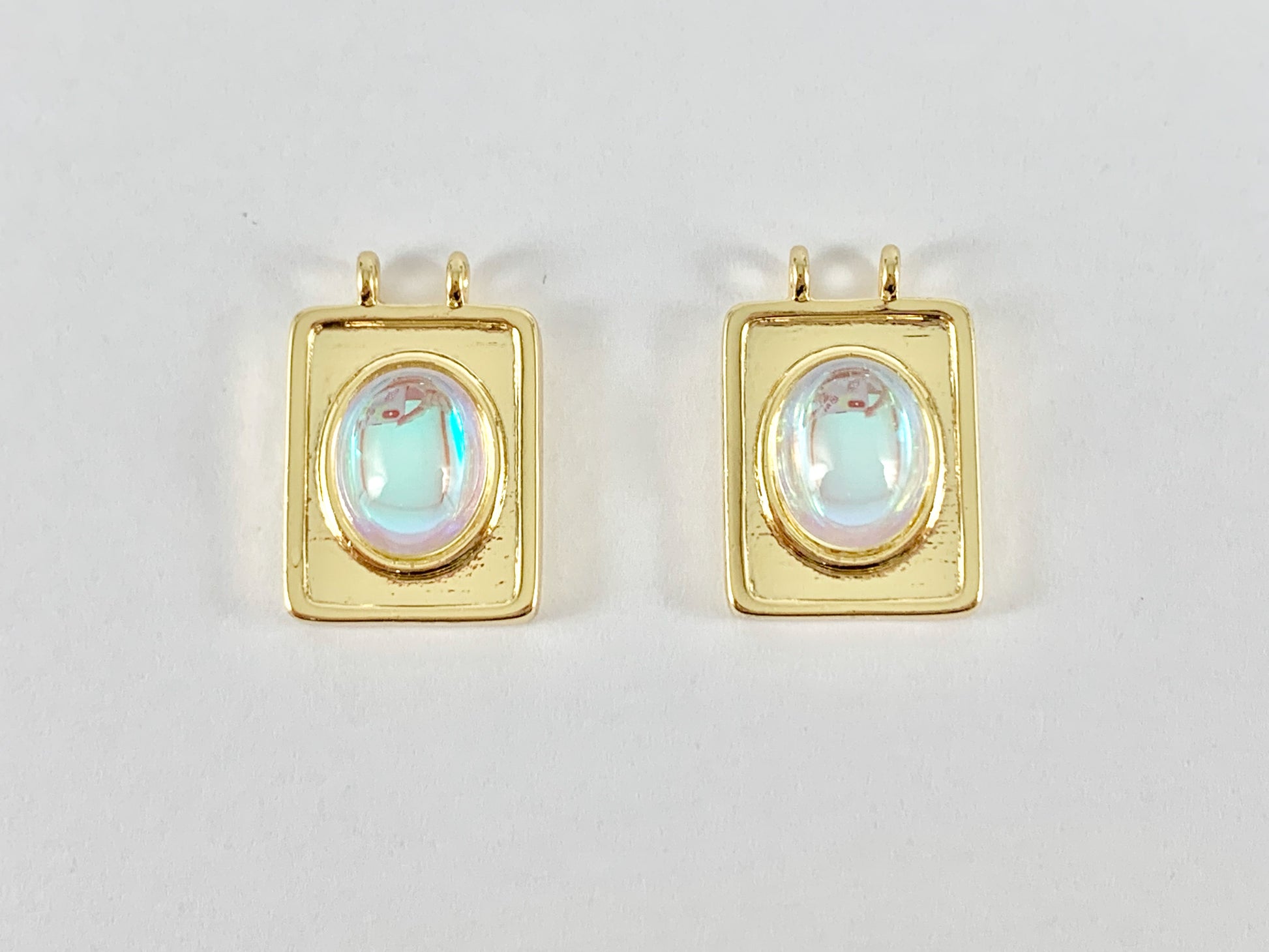 Opalite Oval AB Rectangle Pendants over 18K Gold plated Copper