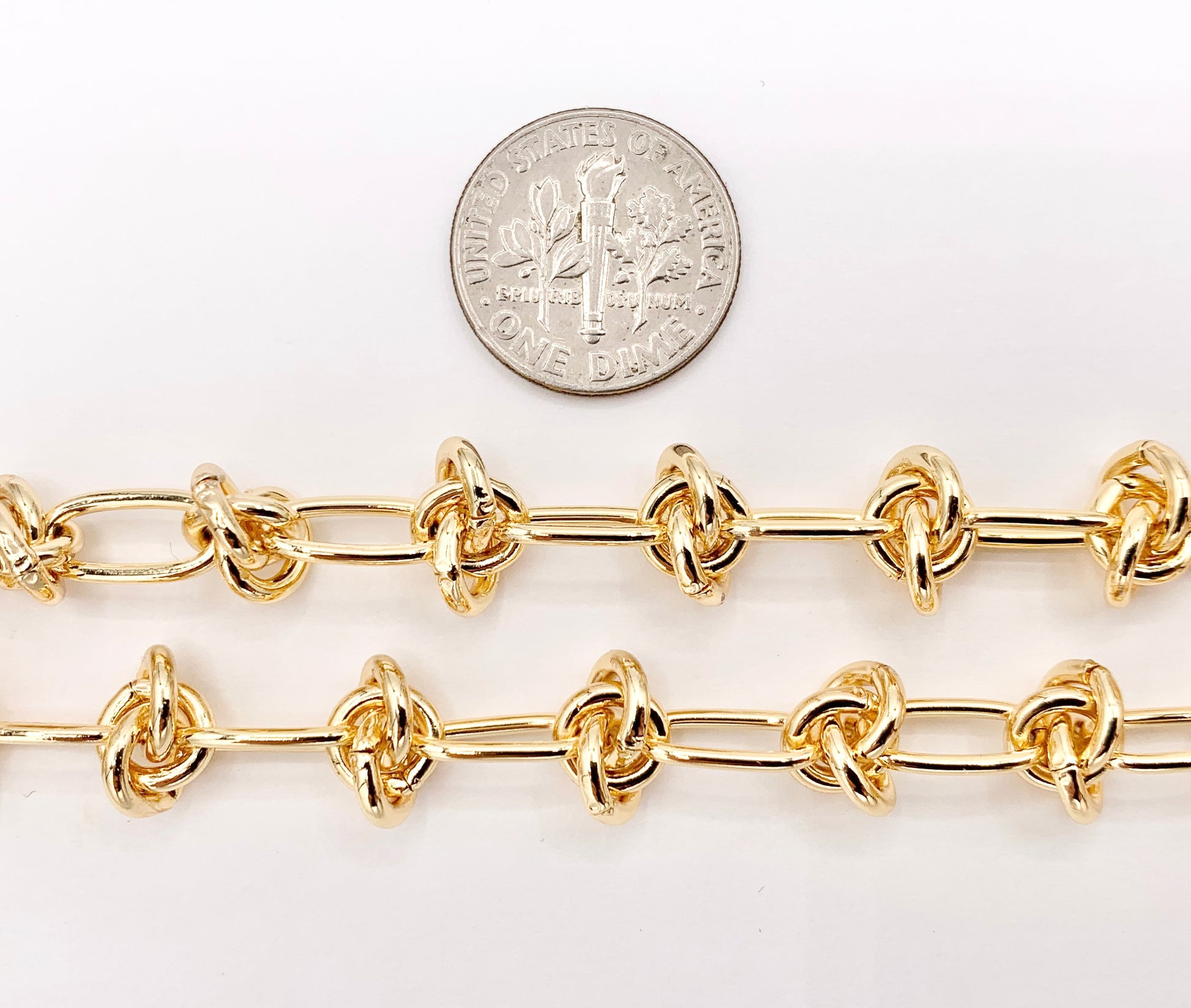 Oval/Paperclip Chain with Knot Links in Real 18K Gold Plated Chain By The Spool For Jewelry Making