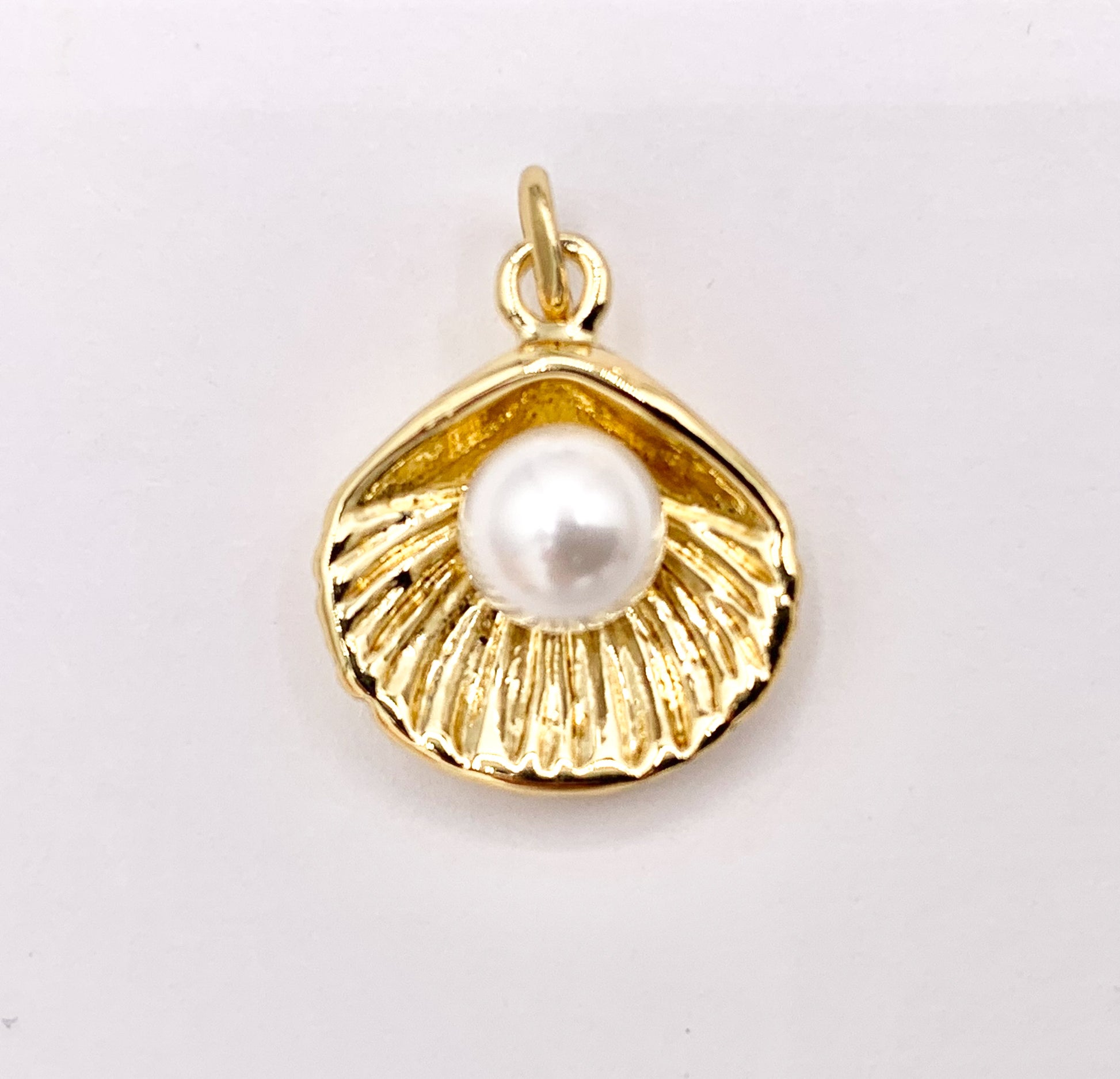 Pearl in Shell Shape Summer Sealife Pendant in Real Gold 18K Plated Over Brass 10 PCS