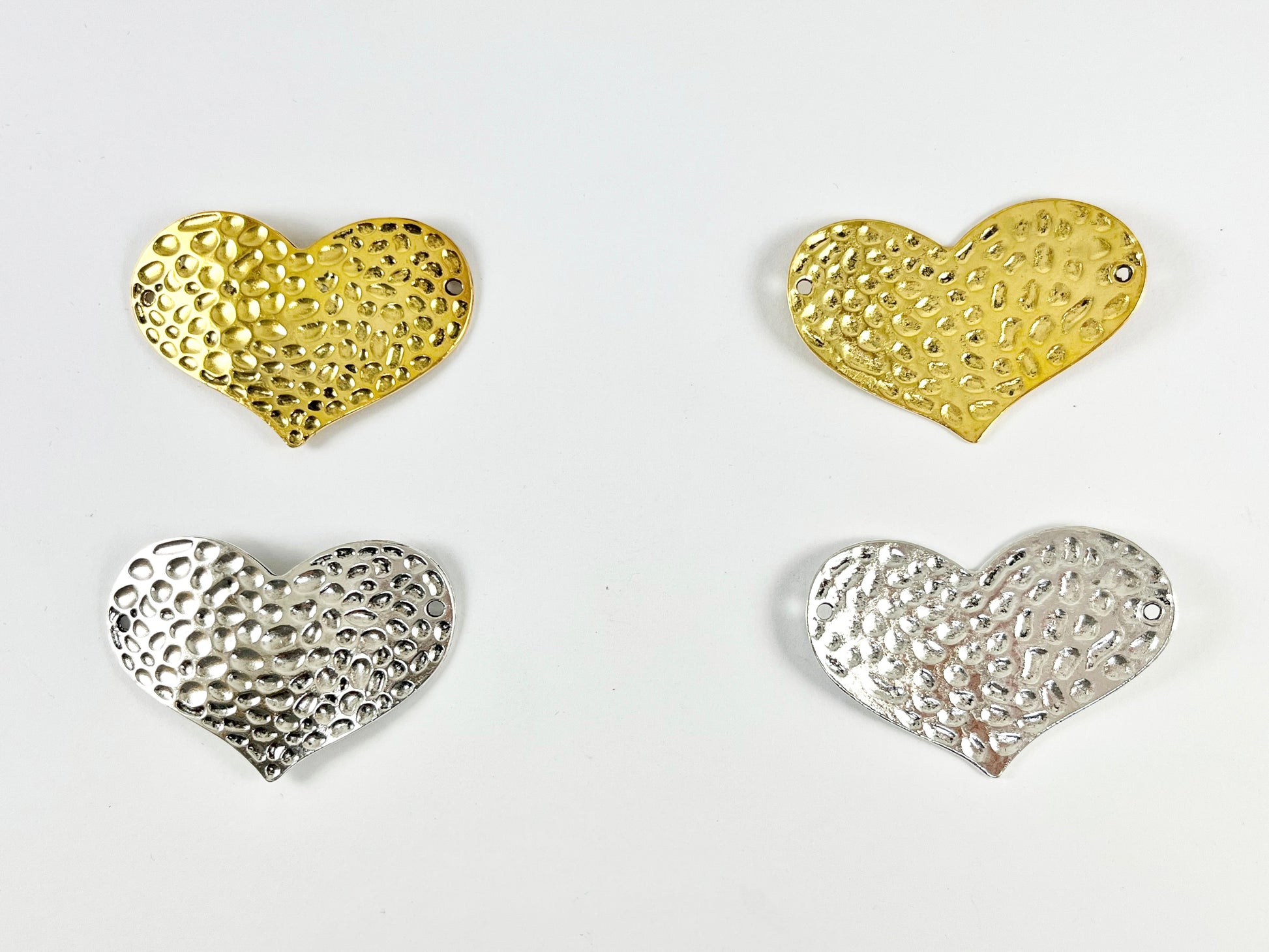 Pewter Heart Connectors Curved Hammered Valentine's Day Heart Pendants in Gold, Silver, Copper, Bronze and Patina Color