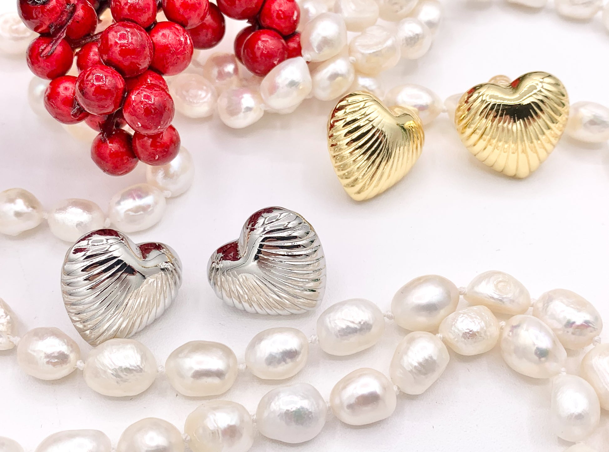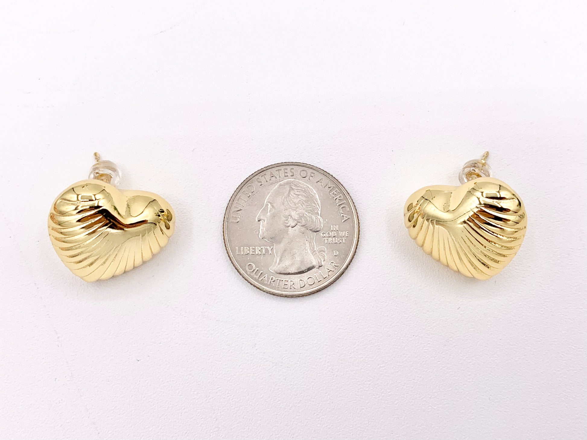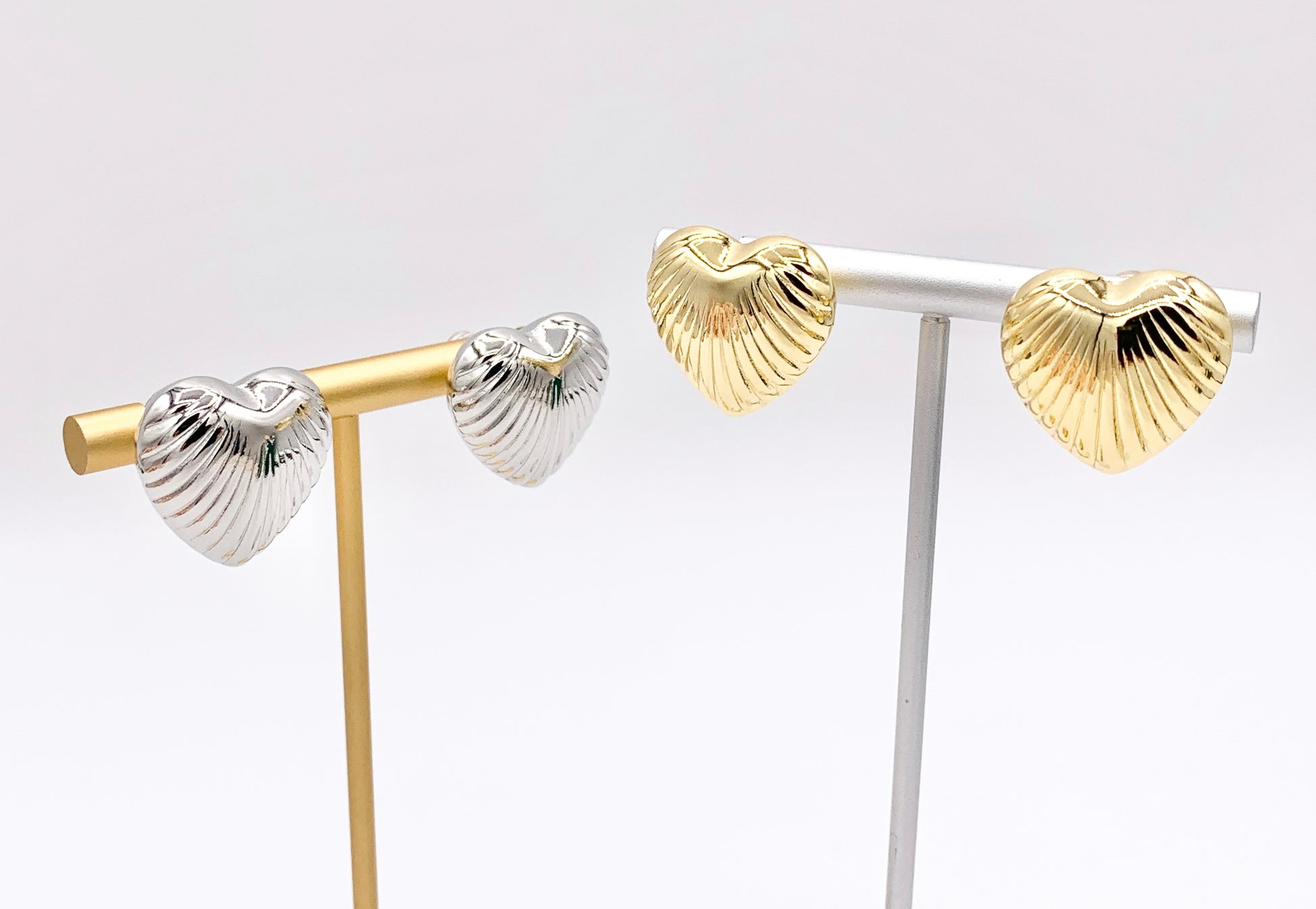 Puffy Hollow Heart Earring Studs in Real 18K Gold and Silver Plated Over Copper 4 pairs