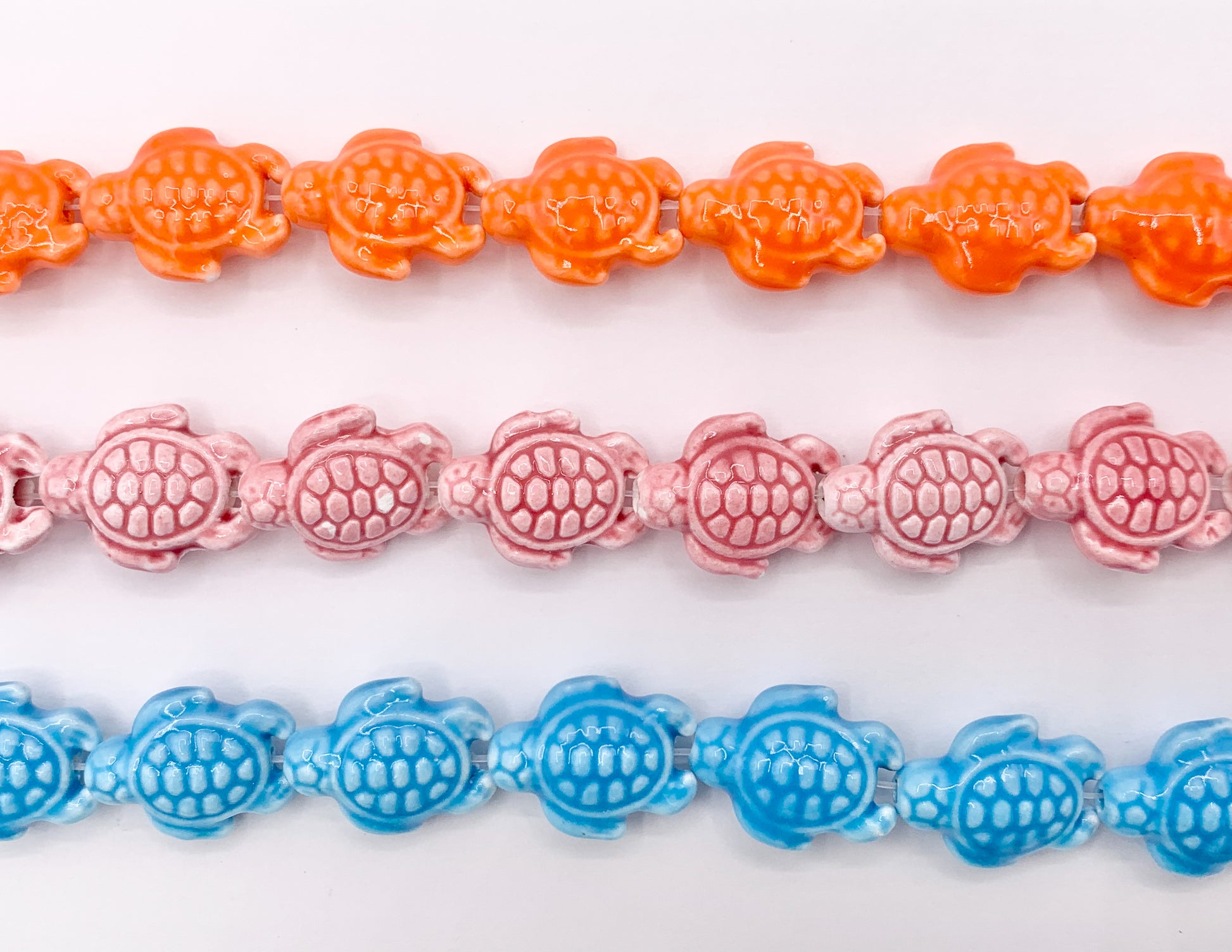 Colorful Glossy Porcelain Ceramic turtle Beads. Makes great bracelets!