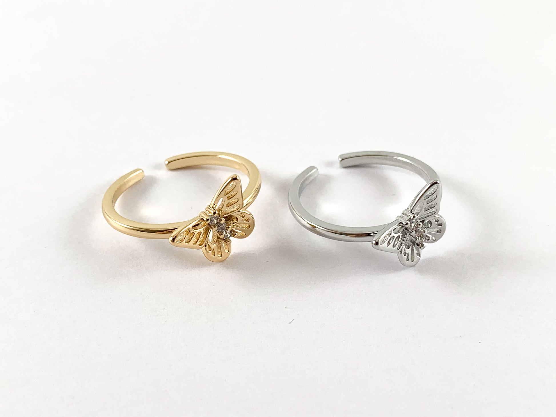 Real 18K Gold and Platinum Plated CZ Pave Adjustable Butterfly Ring 4pcs