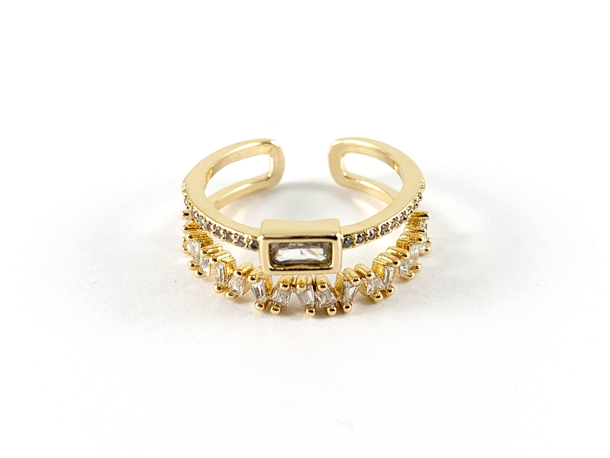 Real 18K Gold and Platinum Plated CZ Pave Adjustable Double Band Ring 4PCS