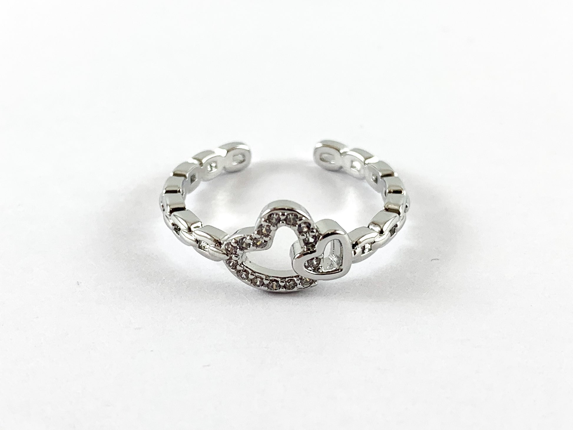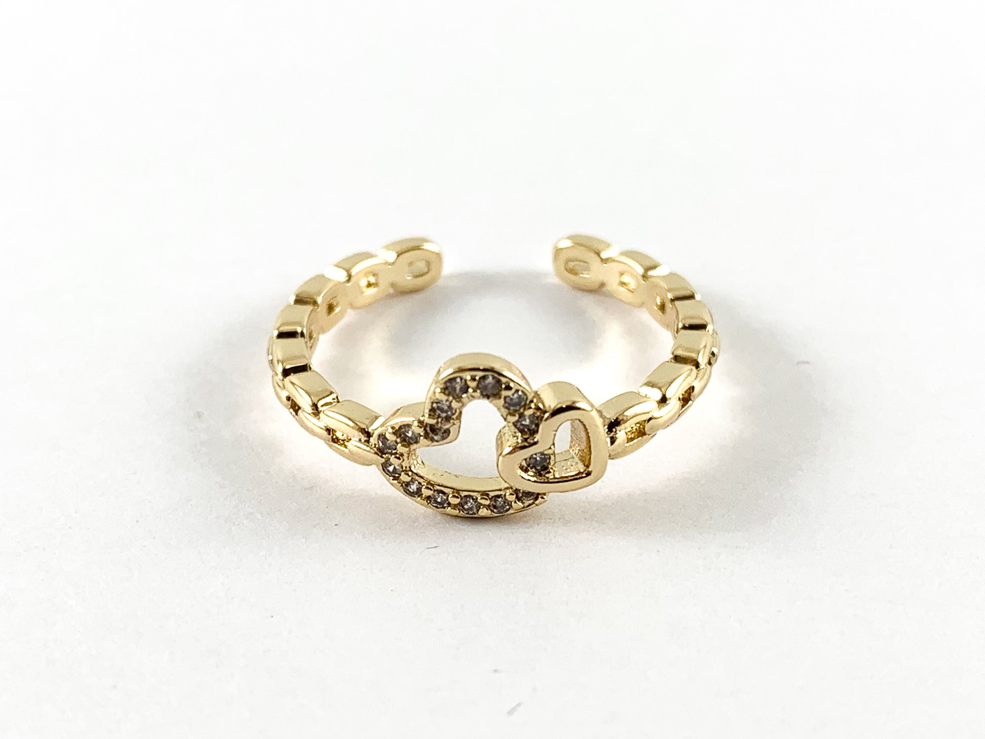 Real 18K Gold and Platinum Plated CZ Pave Adjustable Hearts Ring 4pcs