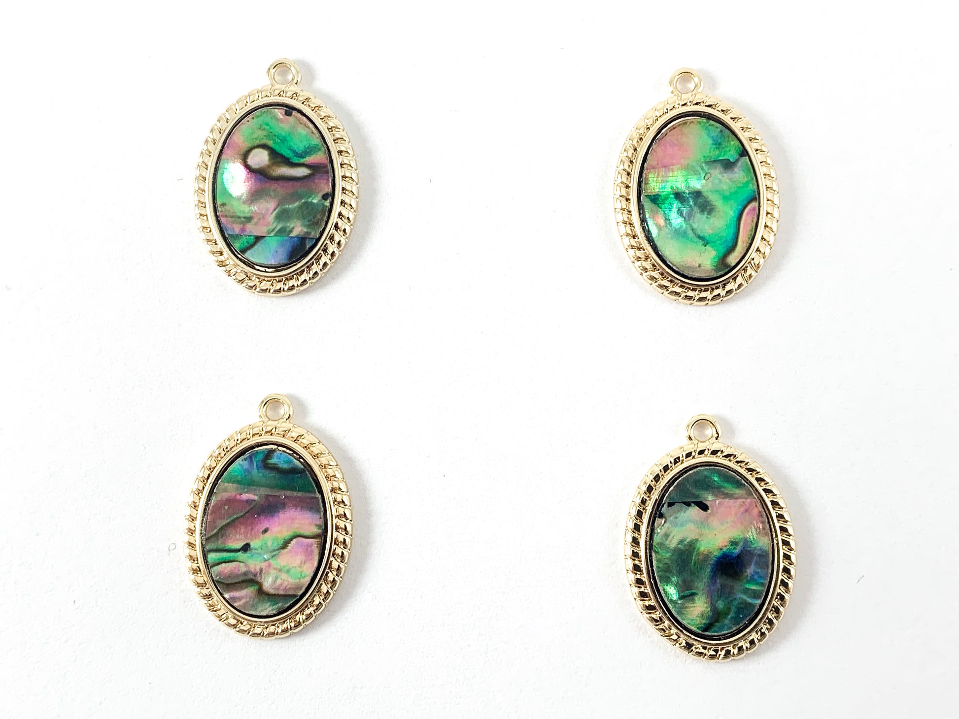Real 18K Gold Plated Abalone Oval Charm Pendant Over Copper 6PCS