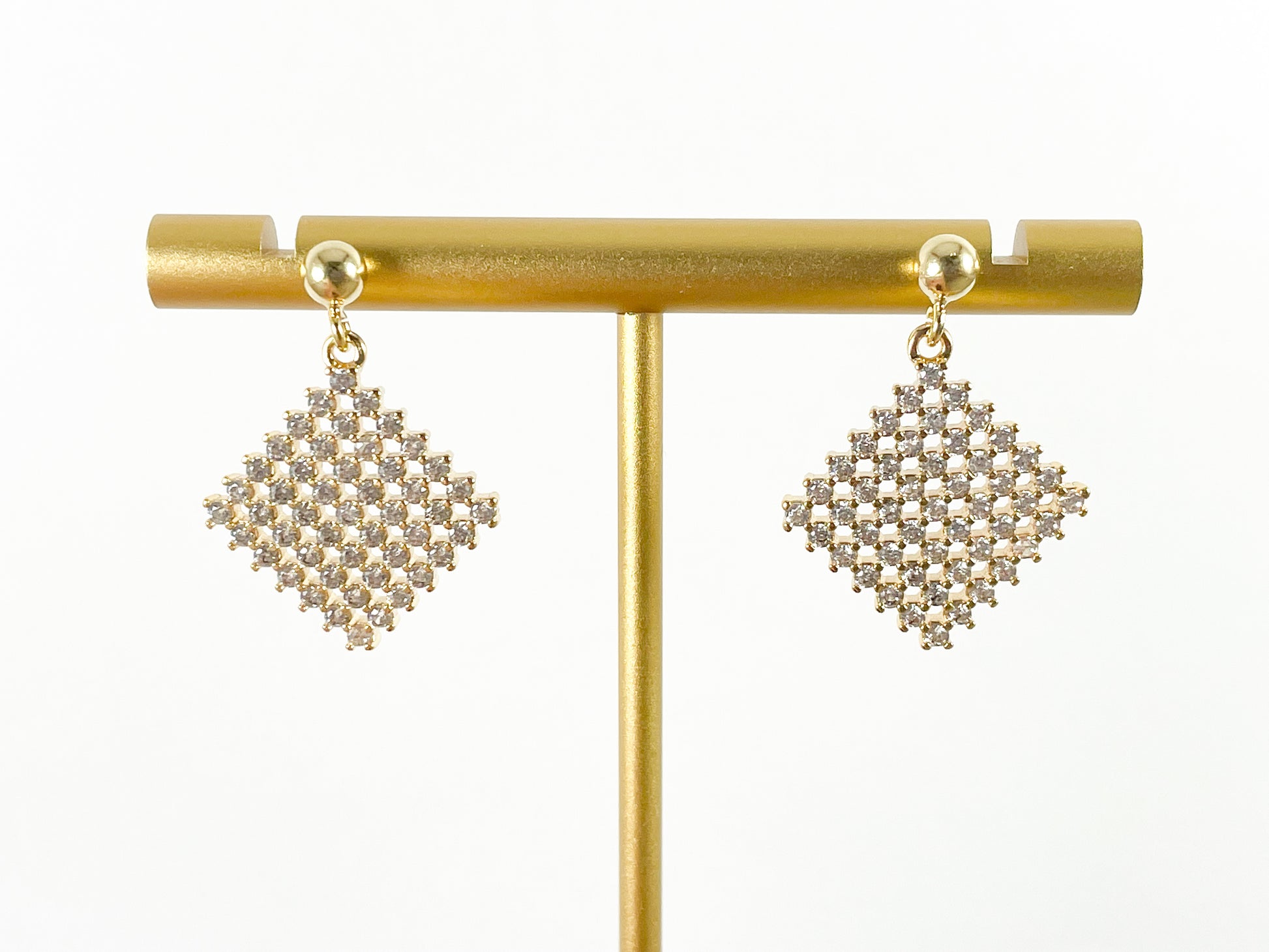 Real 18K Gold Plated CZ Pave Diamond Shape Earrings Over Copper 4pairs