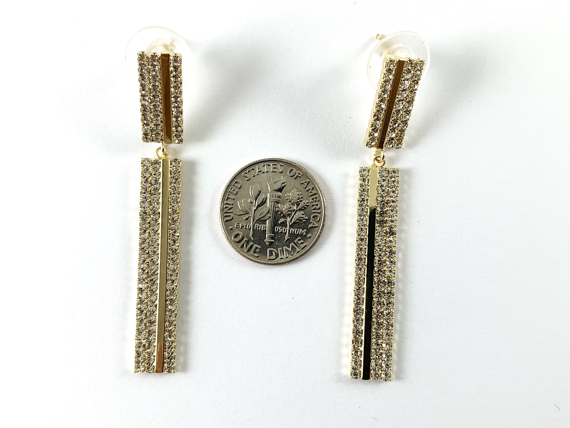 Real 18K Gold Plated CZ Pave Long Rectangle Earrings Over Copper 3 pairs
