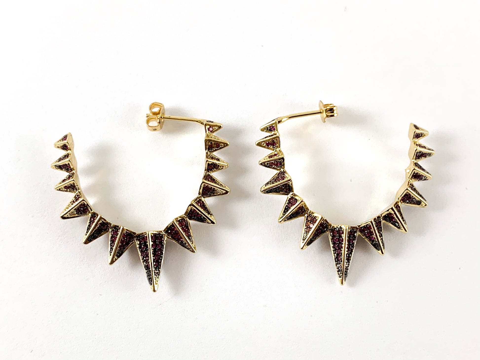 Real 18K Gold Plated CZ Pave Spikes Earring Hoop Over Copper