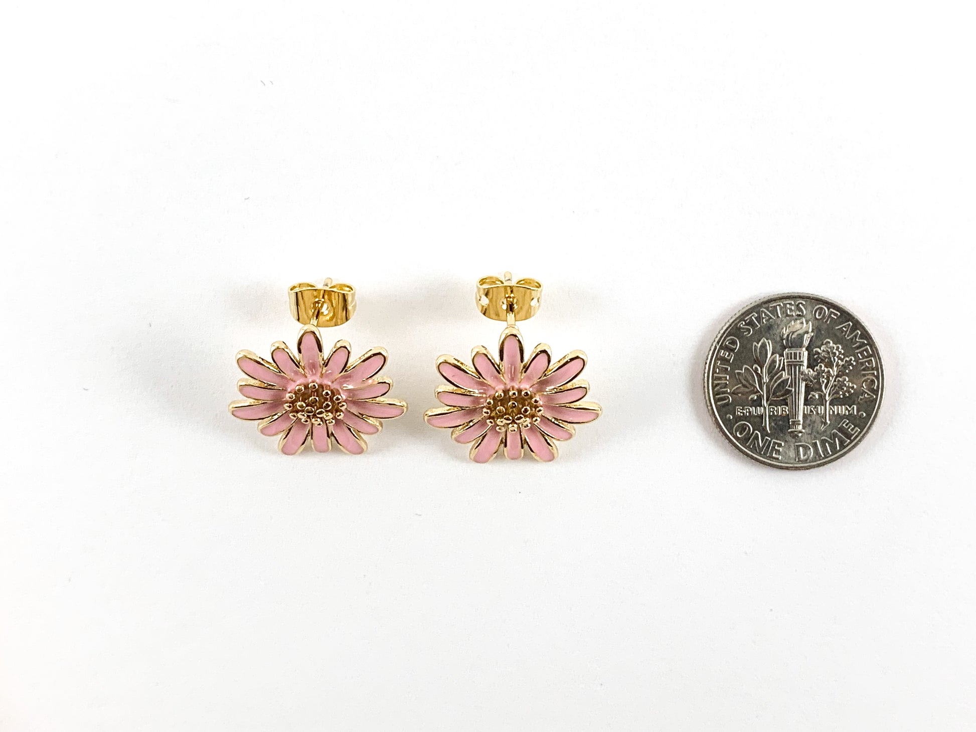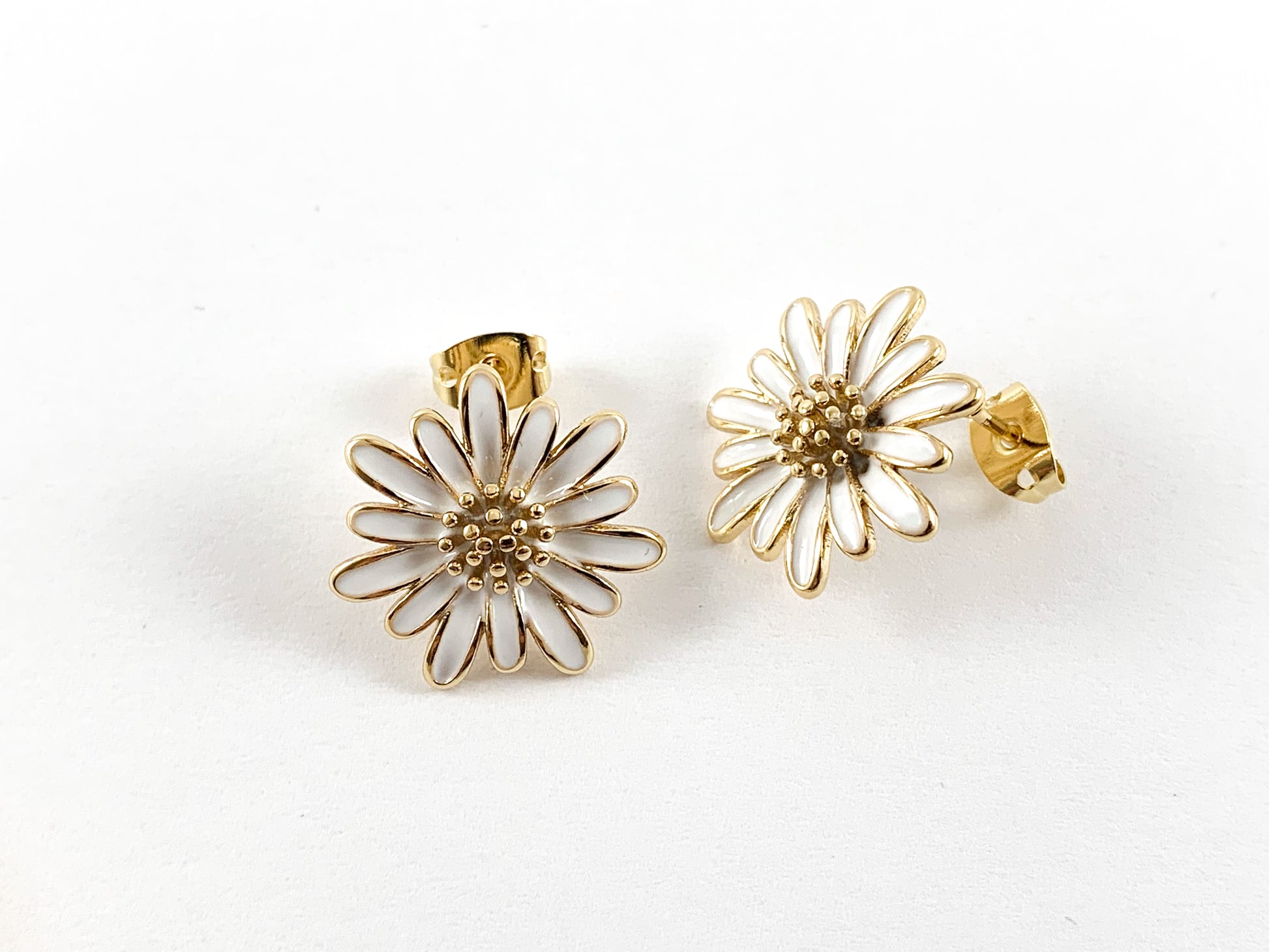These beautiful daisy flower earrings are real gold 18K and Enamel plated with a copper base.