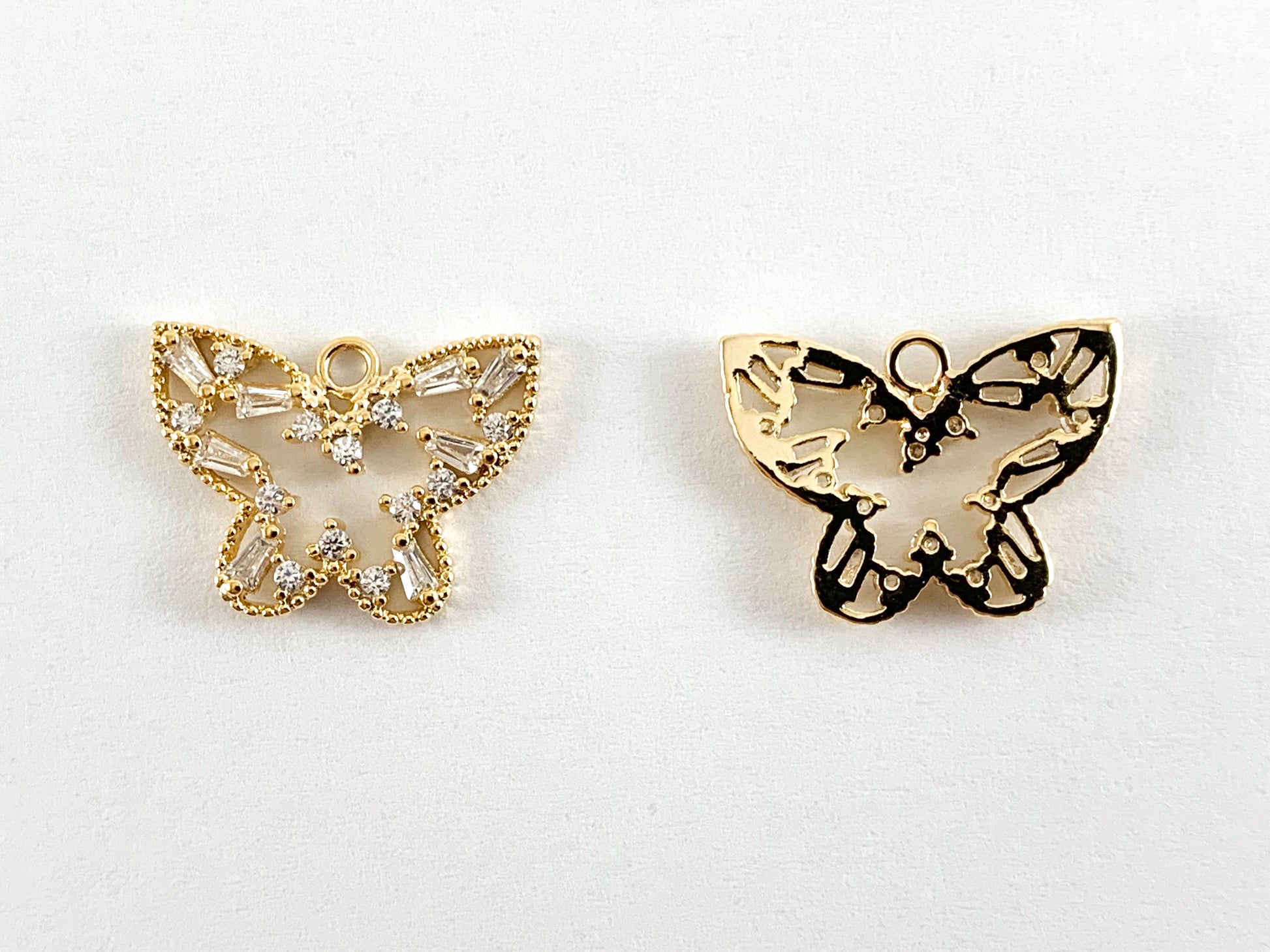 Real 18K Gold Plated Filigree CZ Pave Butterfly Charms 6PCS